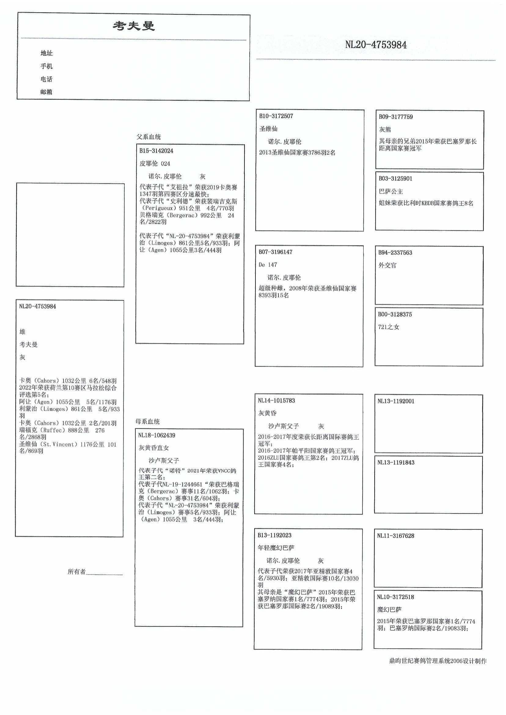 2名全国  圣维仙 3,786羽
