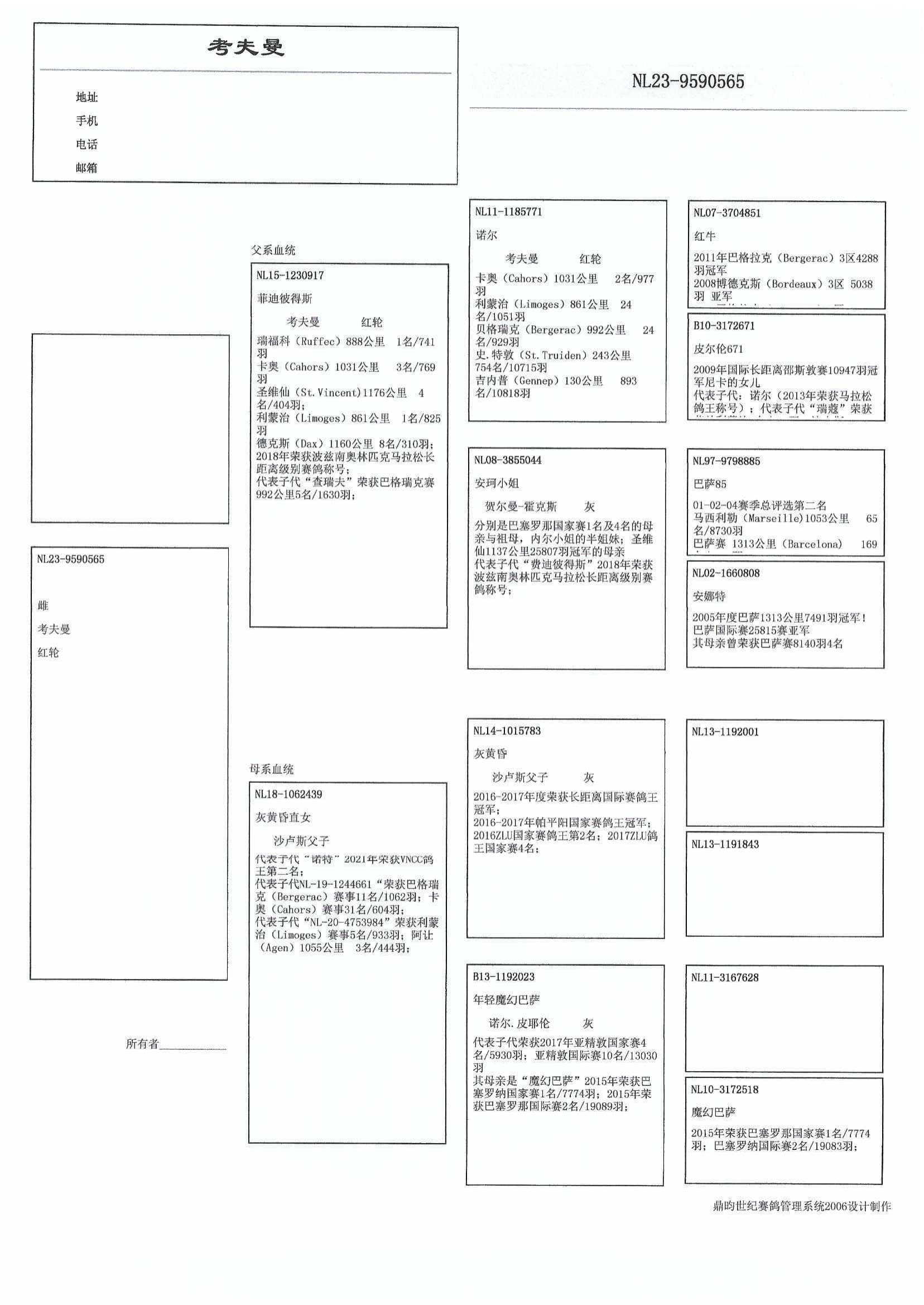 4名全国鸽王荷兰南林堡联合会 ‘17