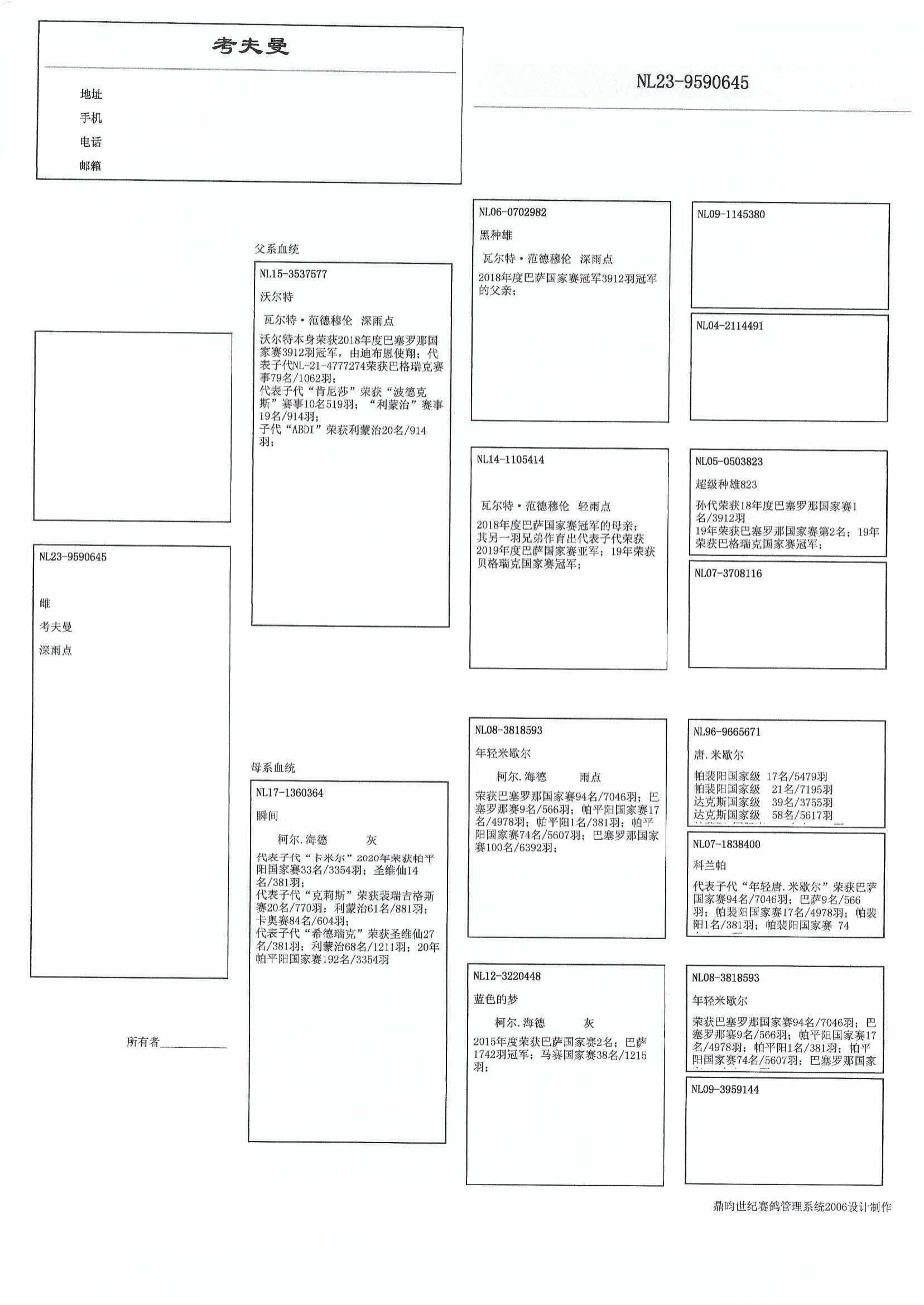 “青年唐.米歇尔 ” (NL08-3818593) x “杰西的孙女” (赢得 13名 全国贝格瑞克 4,096羽)