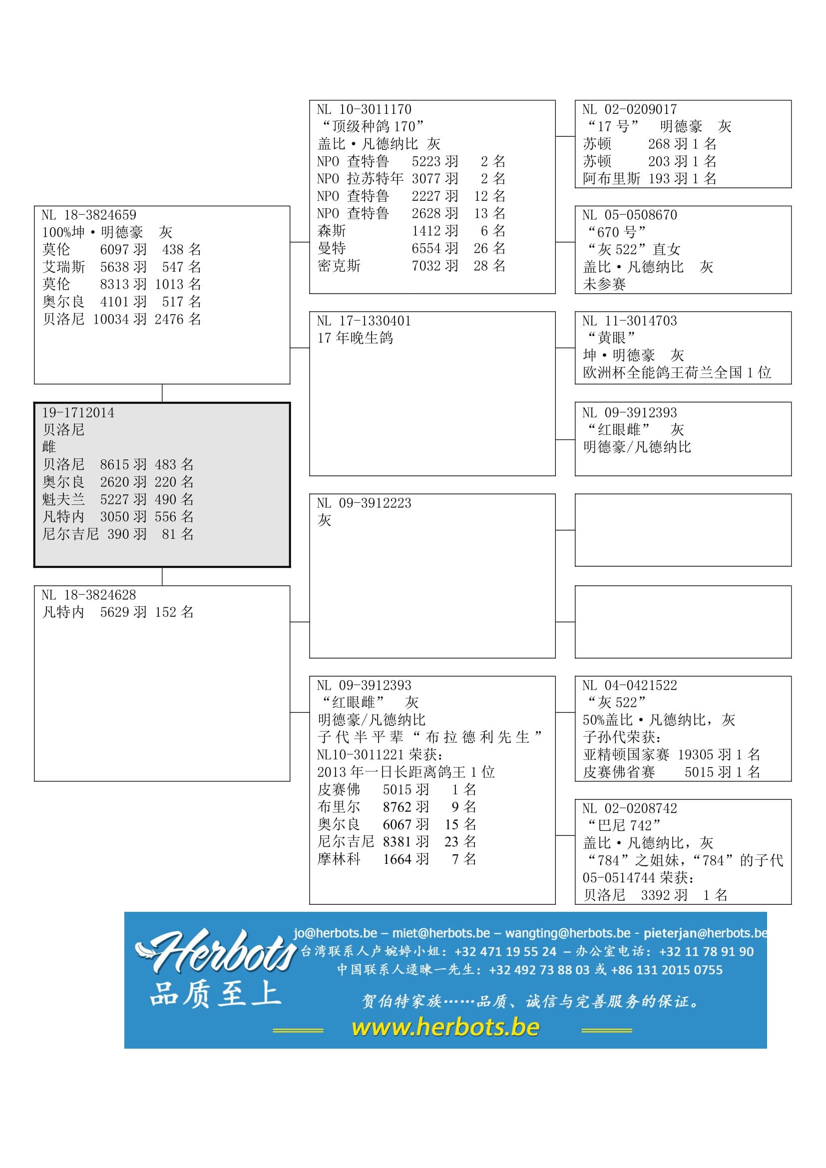 “顶级种鸽 170”荣获: NPO 查特鲁 5,223羽2名 – NPO 拉苏特年3,077羽2名 – NPO 查特鲁 2,227羽12名 – NPO查特鲁 2,628羽13名 – 森斯 1,412羽6名 – 等等