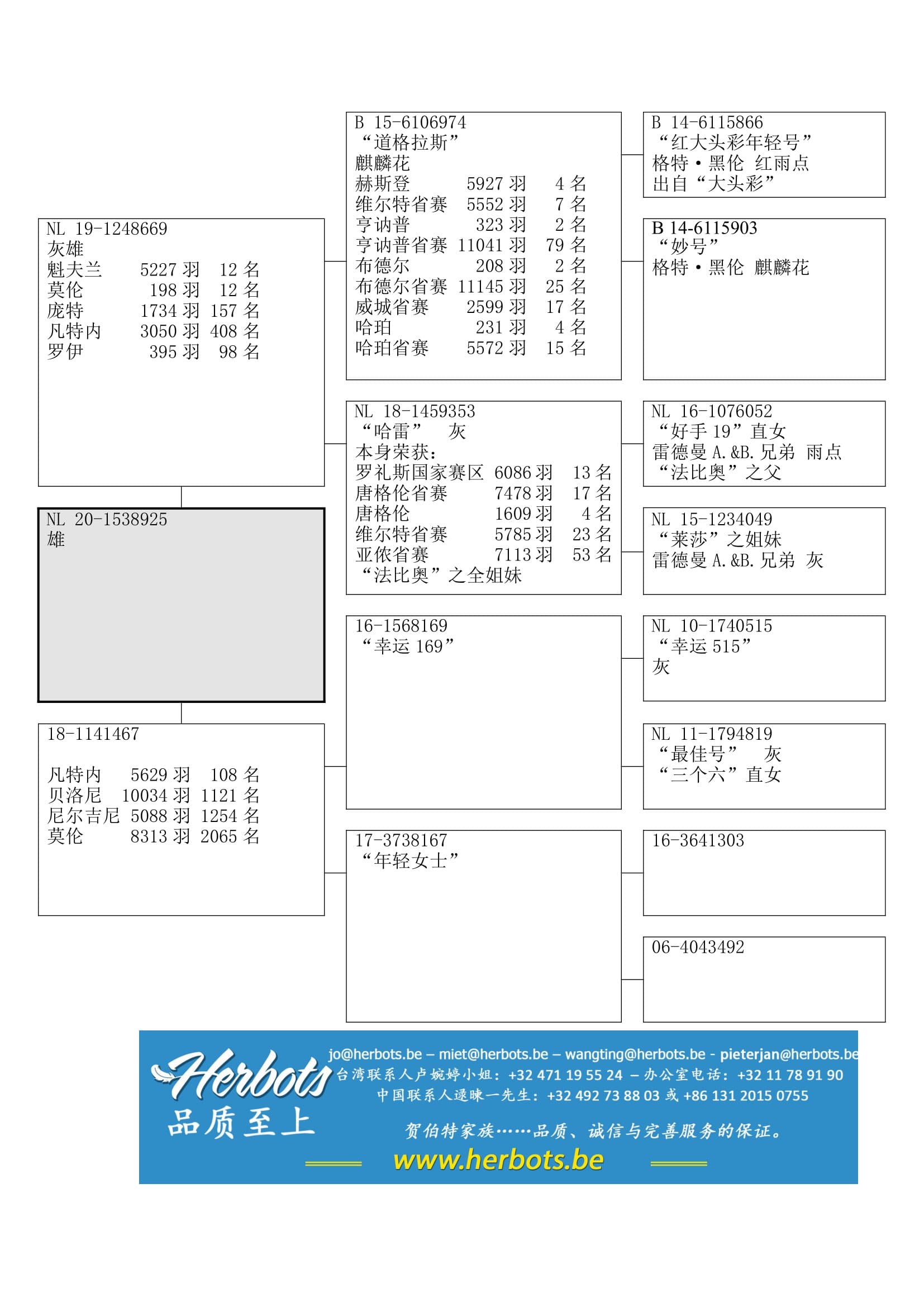 荣获: 魁夫兰 5,227羽12名 – 莫伦 198羽12名 - 庞特 1,734羽157名 – 等等
