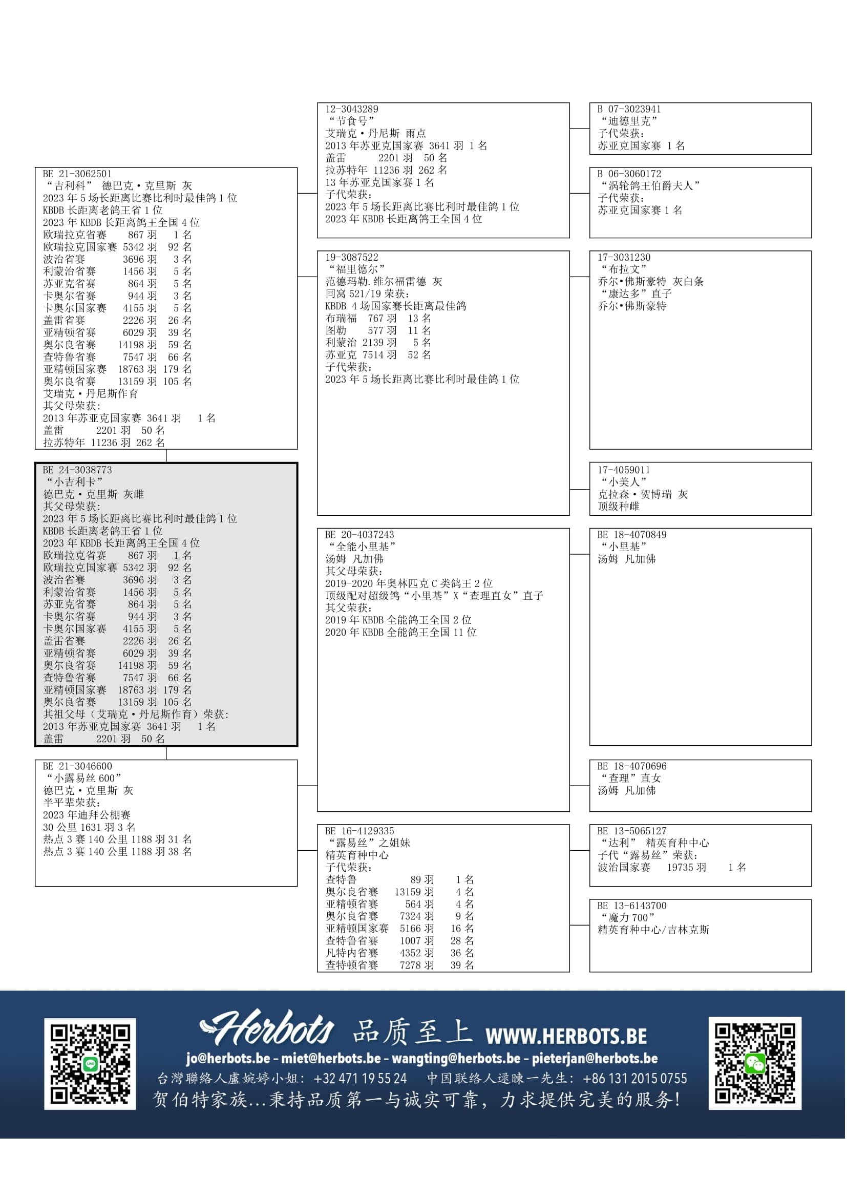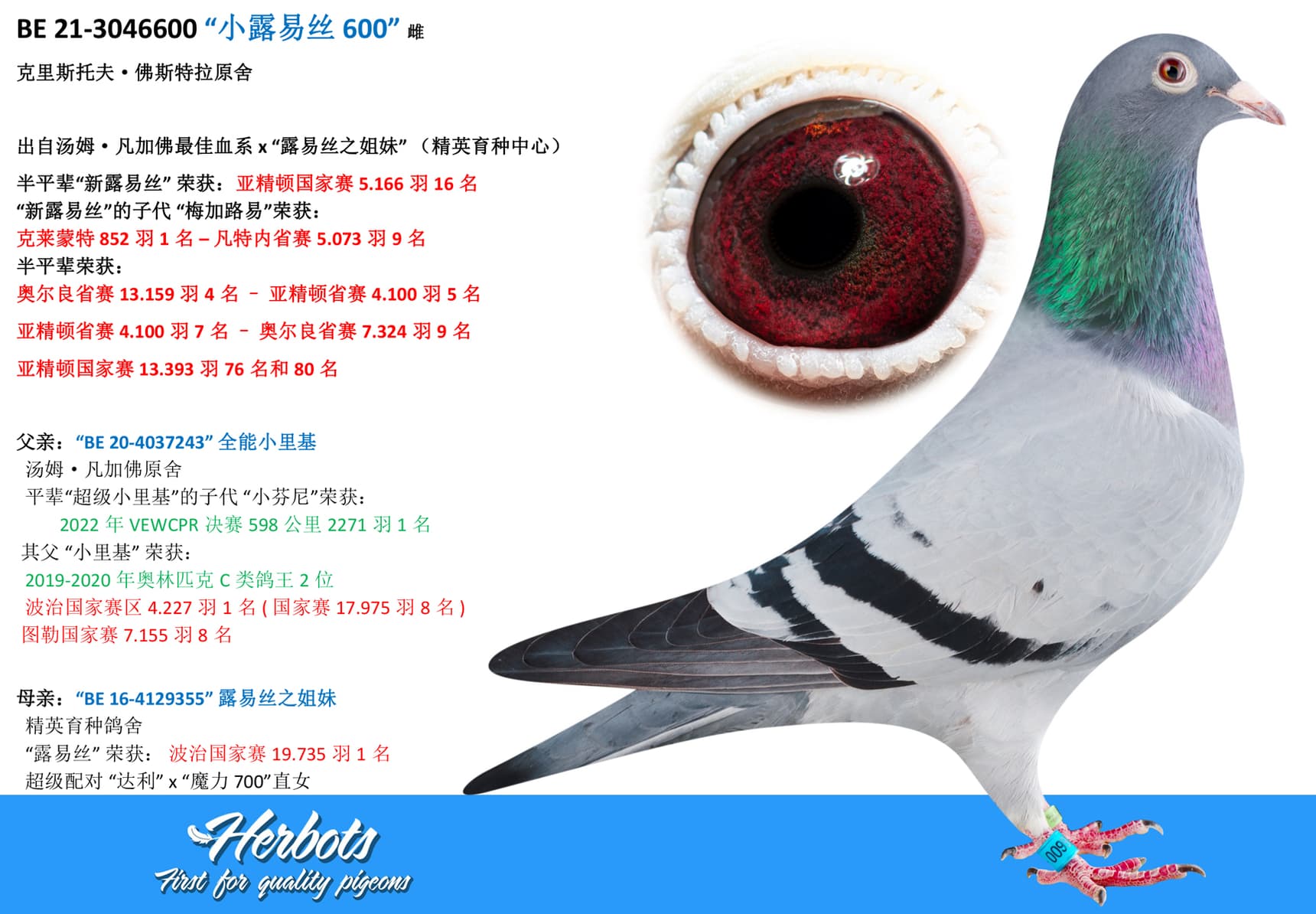 “节食号” ( 苏亚克国家赛 3,641羽1名) x “福里德尔” (4场国家赛长距离最佳鸽之同窝姐妹)作出