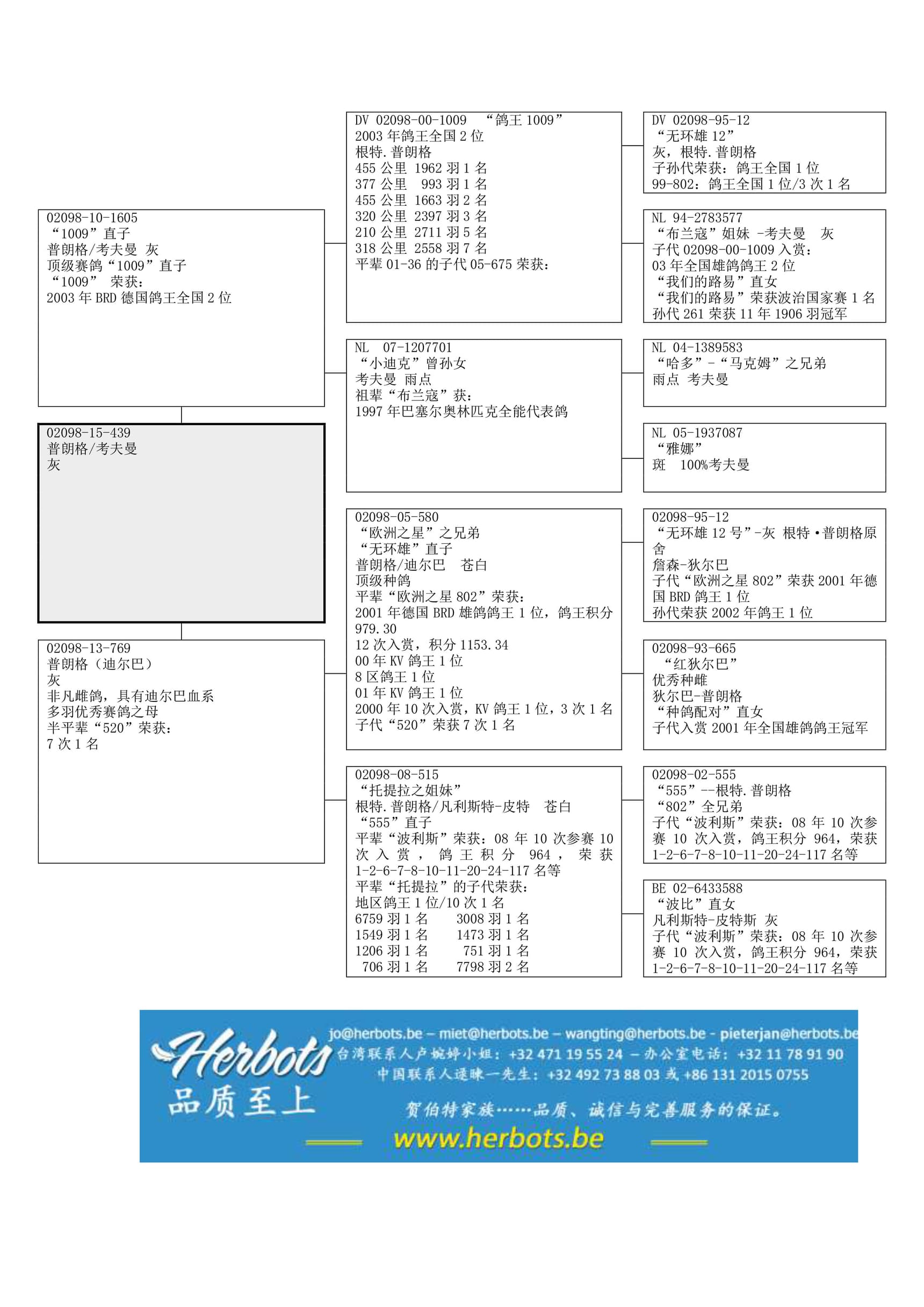 100% 根特·普朗格 “1009”直孙女,“1009”荣获: 2003年鸽王全国2位