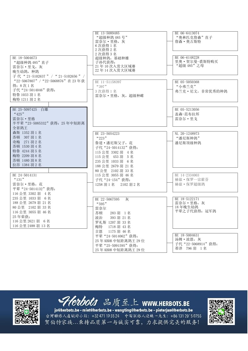 半平辈 (同父 ) “BE 21-5119345”之子代代表及佳绩: