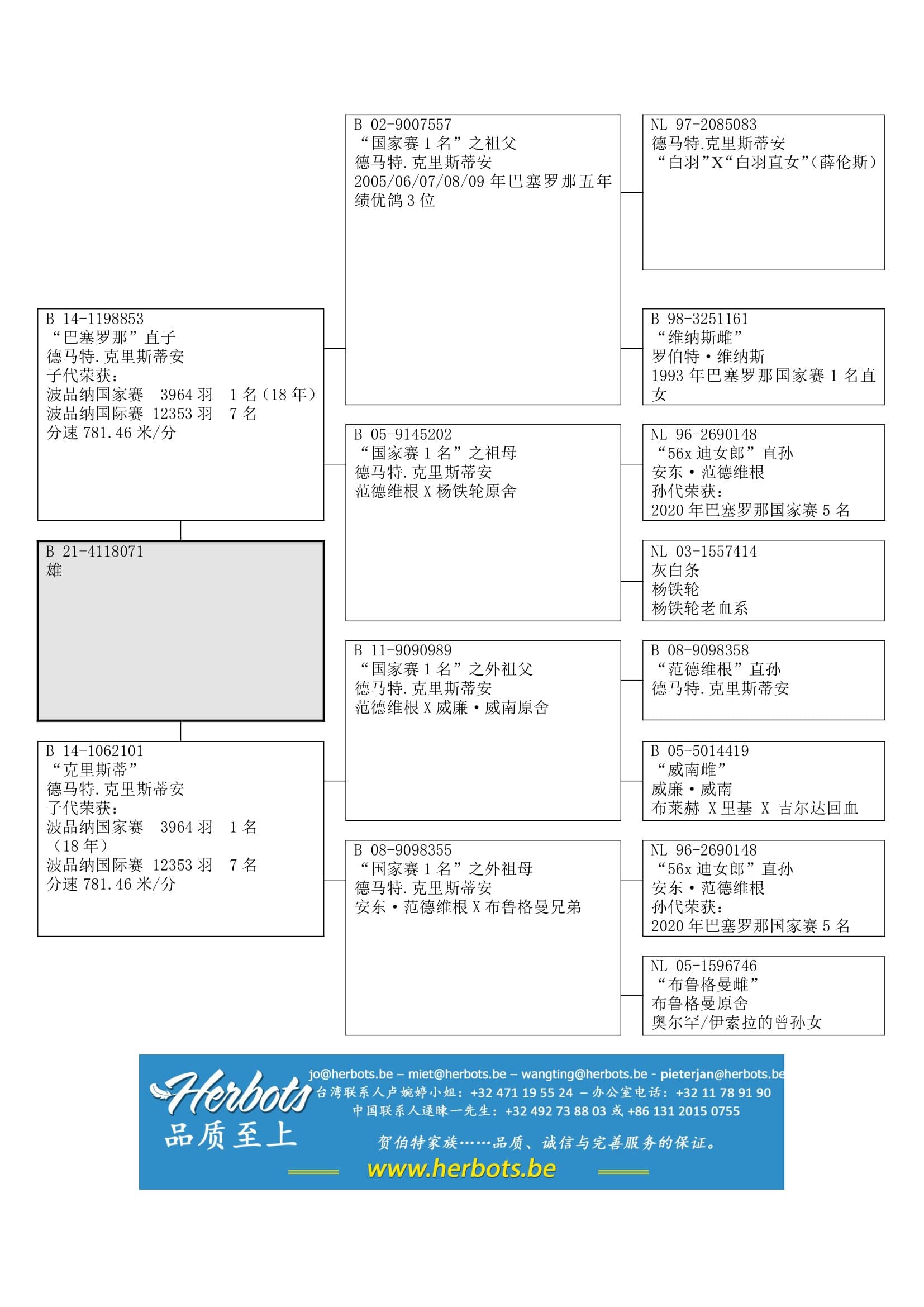 母亲: “克里斯蒂” B14-1062101鸽系: 范德维根 x 威廉·威南 x 布鲁格曼兄弟