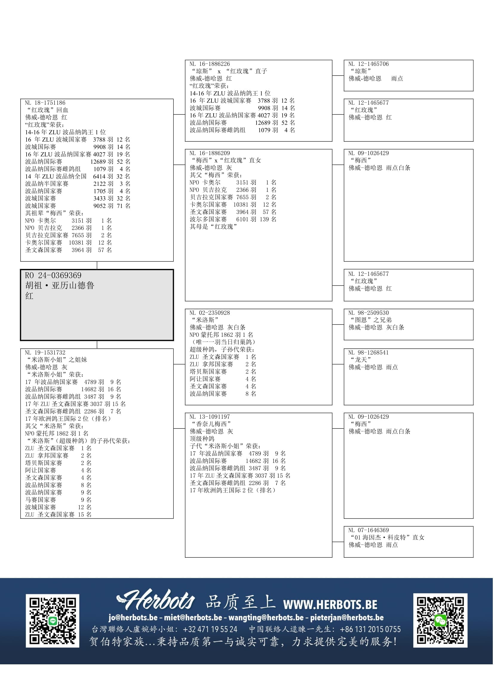 全平辈“米洛斯小姐”(冠军雌鸽)荣获: