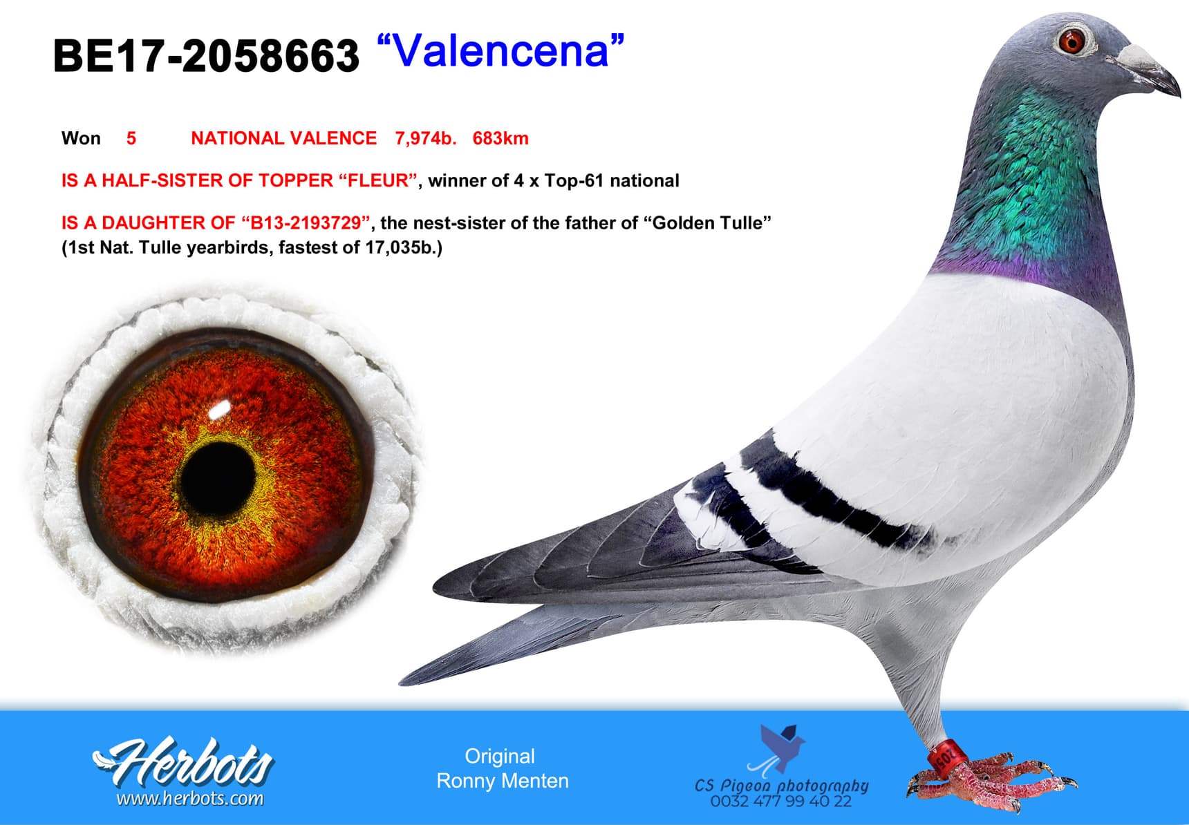 半平辈“瓦伦斯娜” 荣获:瓦伦斯国家赛 7,974羽 5名其祖辈 “奥林匹克公主” 荣获: 波治国家赛一岁鸽组 10,173羽 1名 45,730 羽分速最高 拉苏特年国家赛 9,580羽 16名其祖辈 “黄金图勒” 荣获: 17年图勒国家赛一岁鸽组9,586羽 1名646公里图勒国家赛老鸽组+一岁鸽组 17,035羽 1名