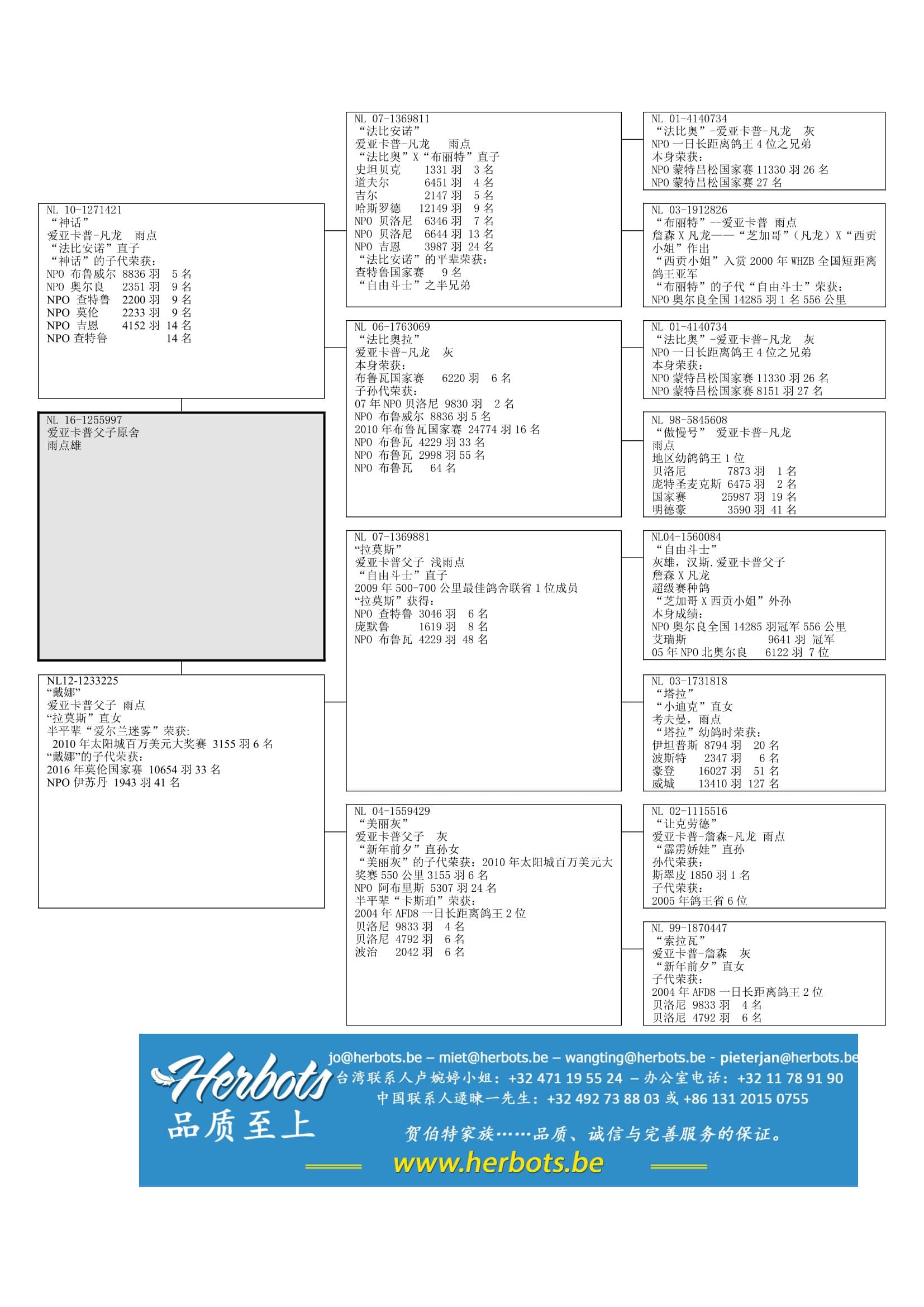 “法比奥拉” NL06-1763069 荣获: 布鲁瓦国家赛 6,220羽6名