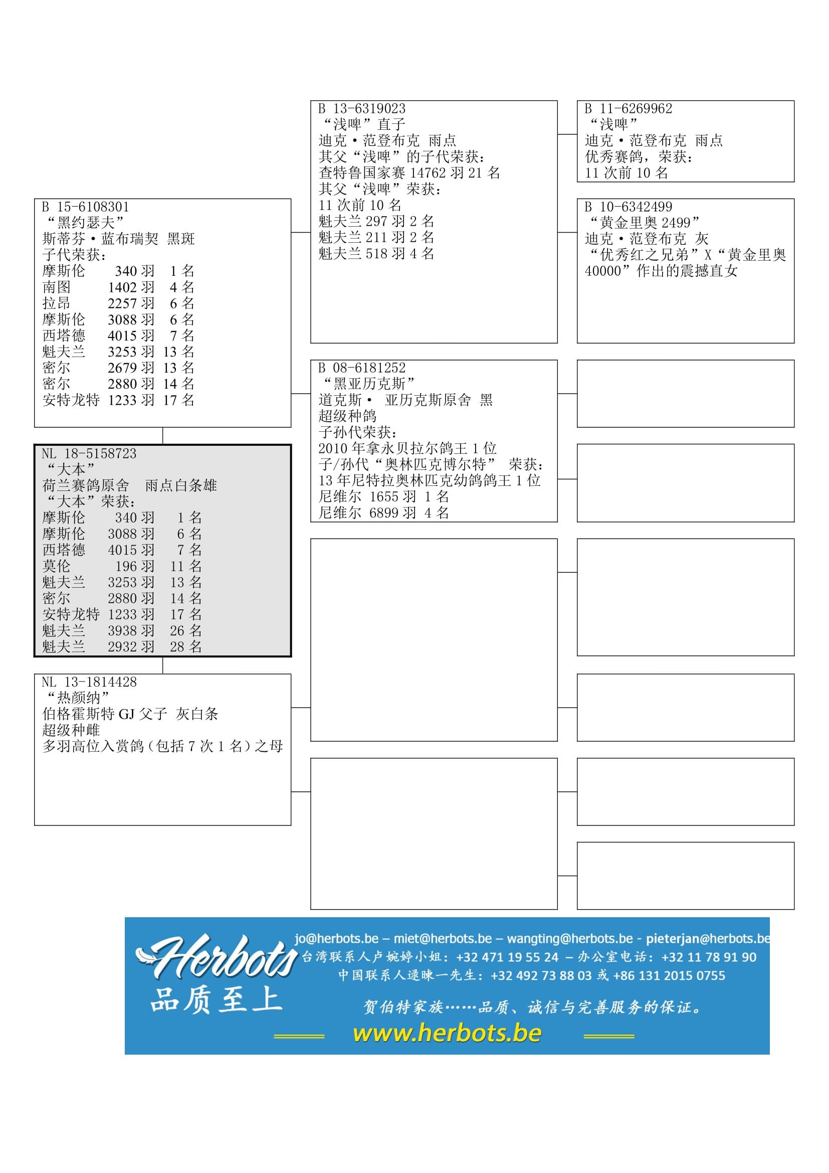 子孙代荣获: 拿永鸽王1位 - “奥林匹克博尔特”(尼特拉奥林匹克鸽王)