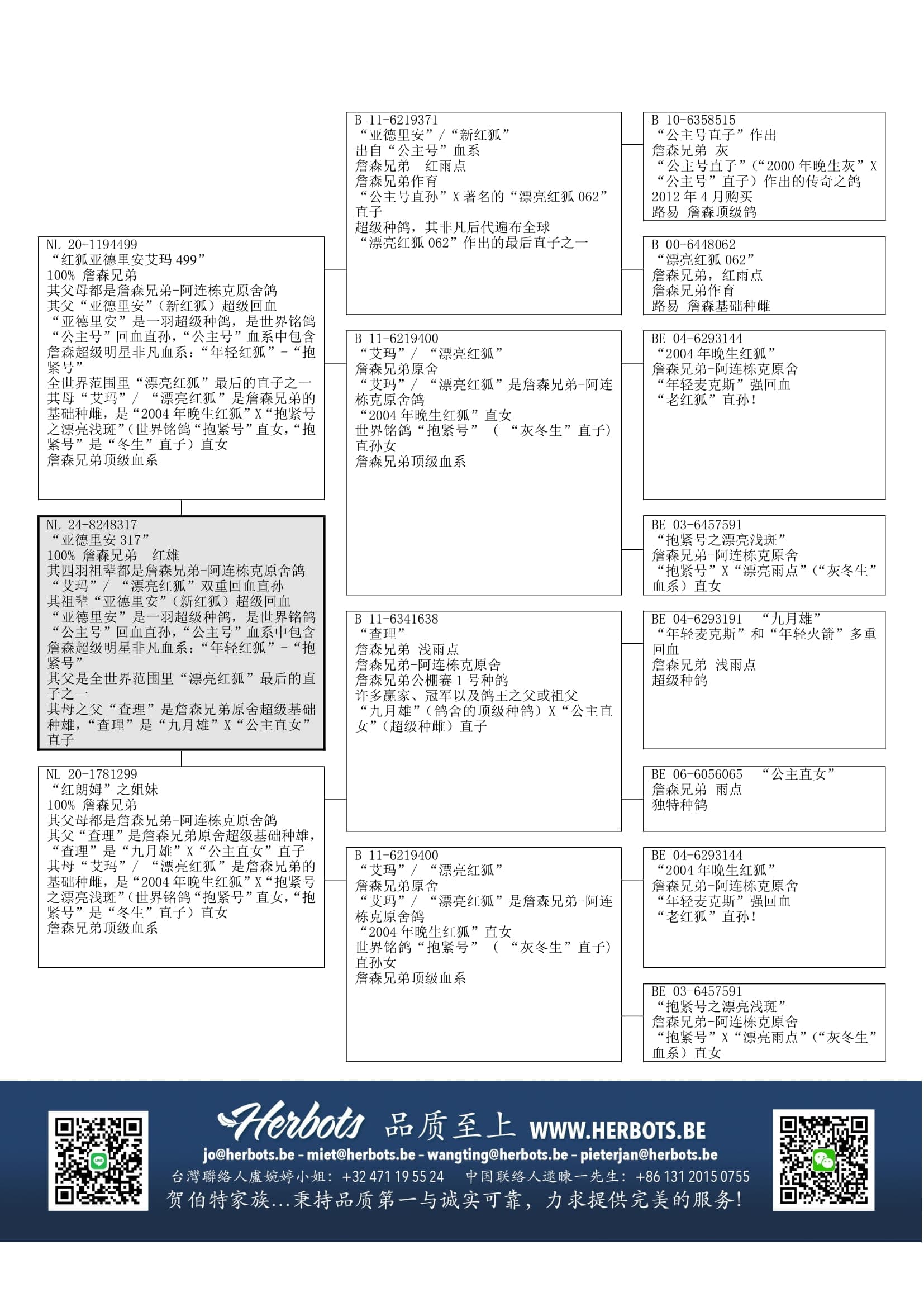 4羽祖辈们都是詹森兄弟-阿连栋克原舍鸽