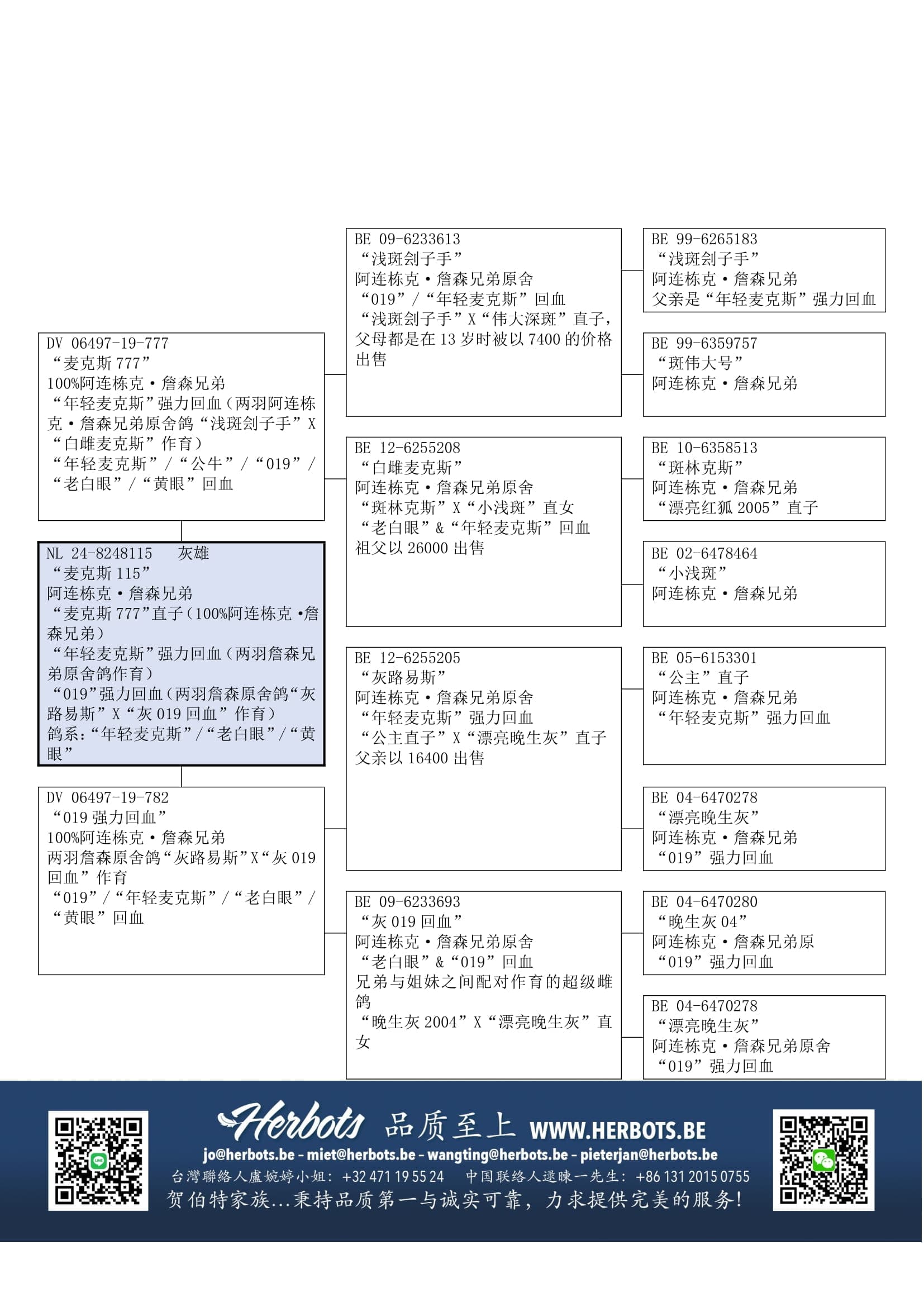 所有4羽祖父母都是詹森兄弟原舍鸽