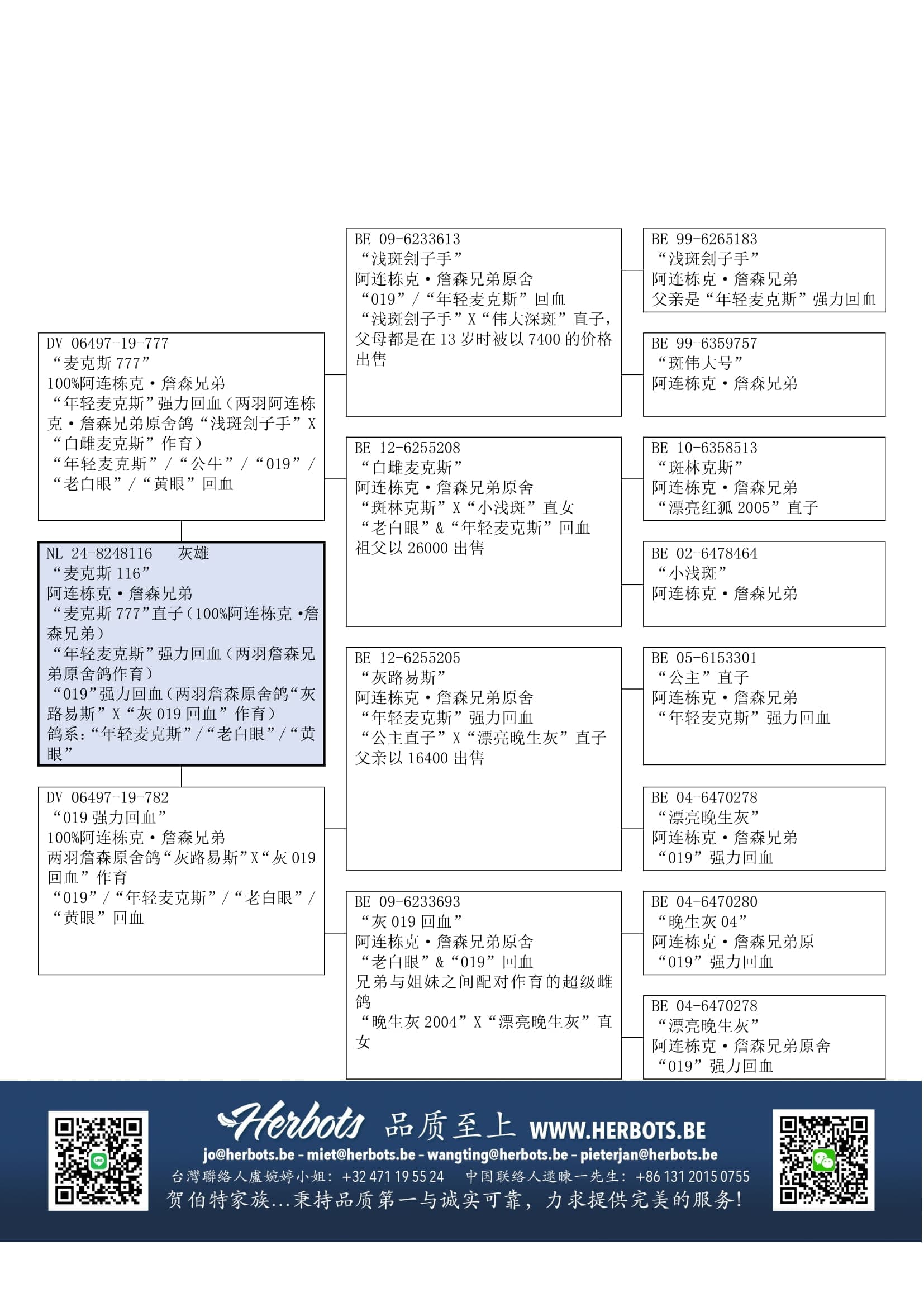所有4羽祖父母都是詹森兄弟原舍鸽
