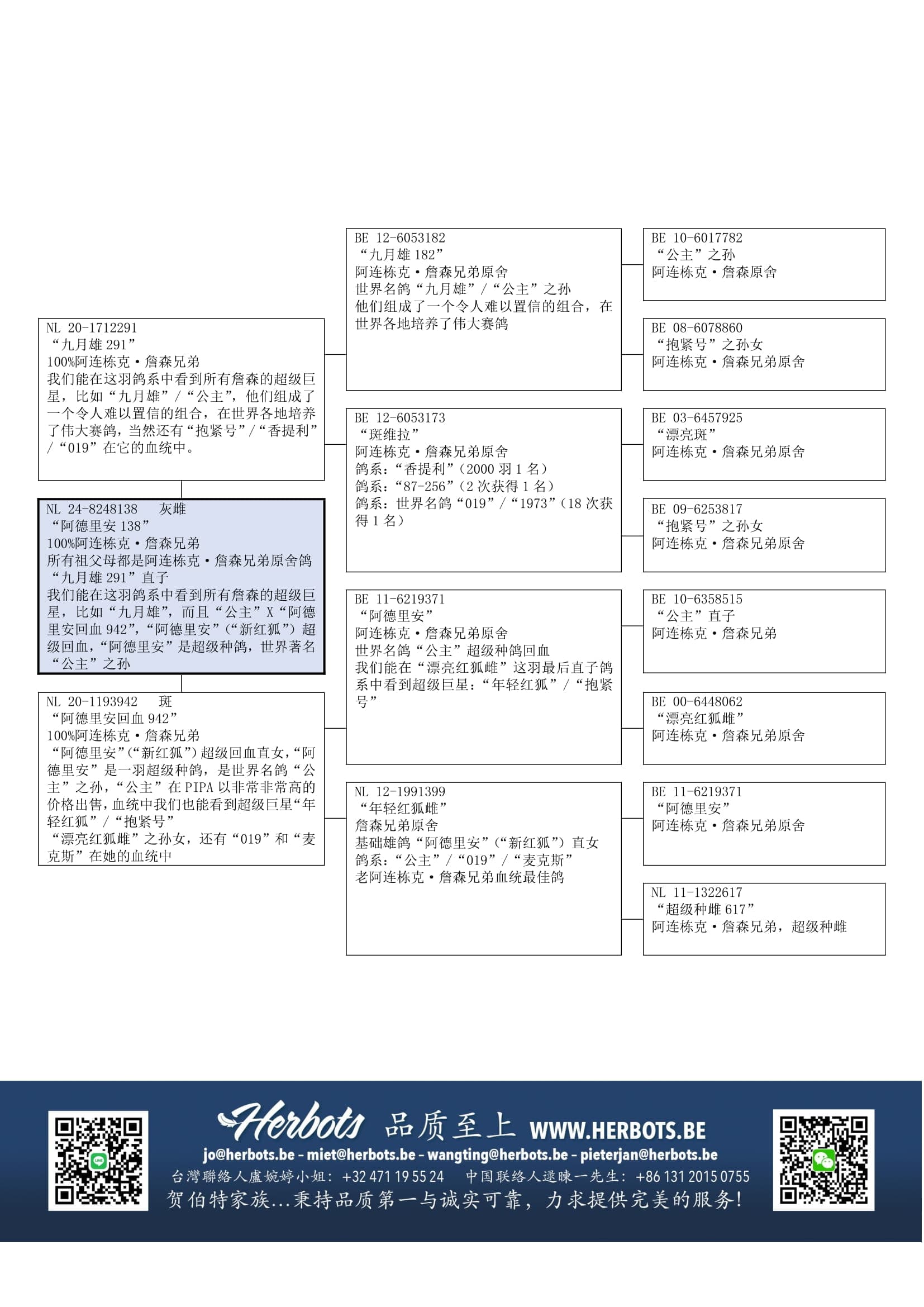 世界名鸽 “九月雄” 与种鸽鸽系 “抱紧号” / “公主”共同作育之孙