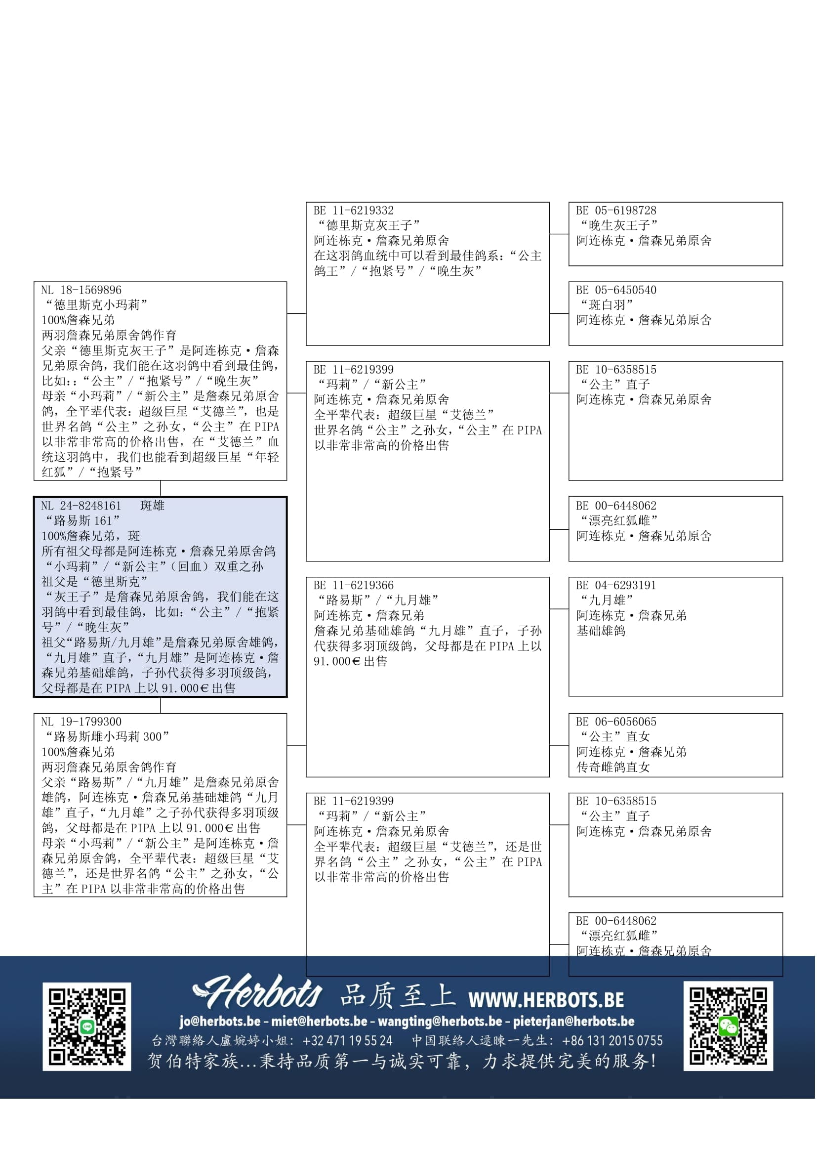 鸽系:著名詹森鸽“王子”, “抱紧号”,“晚生灰”.