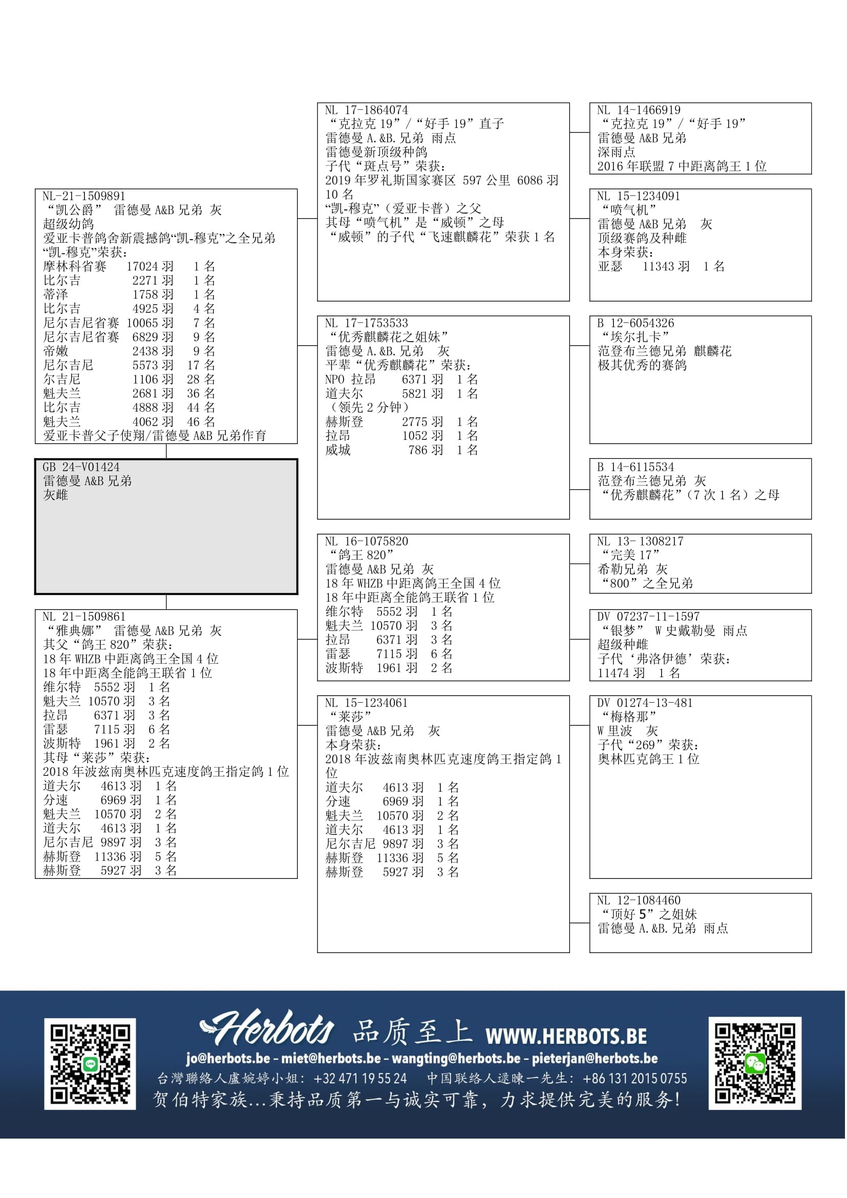 世界铭鸽“优秀麒麟花之姐妹” (7次1名;基础种雌)之全姐妹