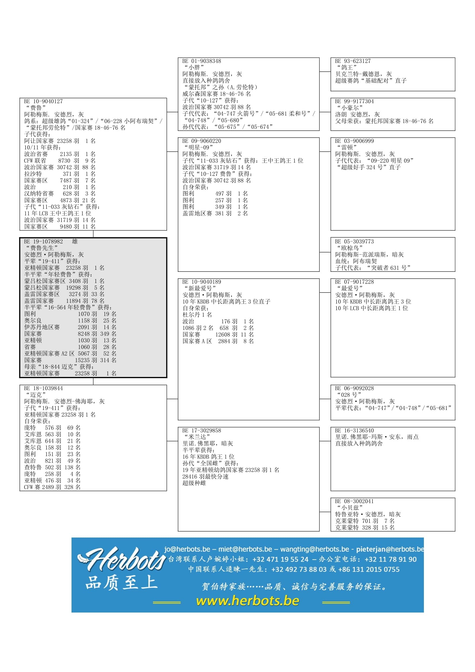 “新最爱”(KBDB中长距离鸽王3位直子)X“米兰达”(鸽王全省1位半姐妹-里诺.佛黑耶)作育