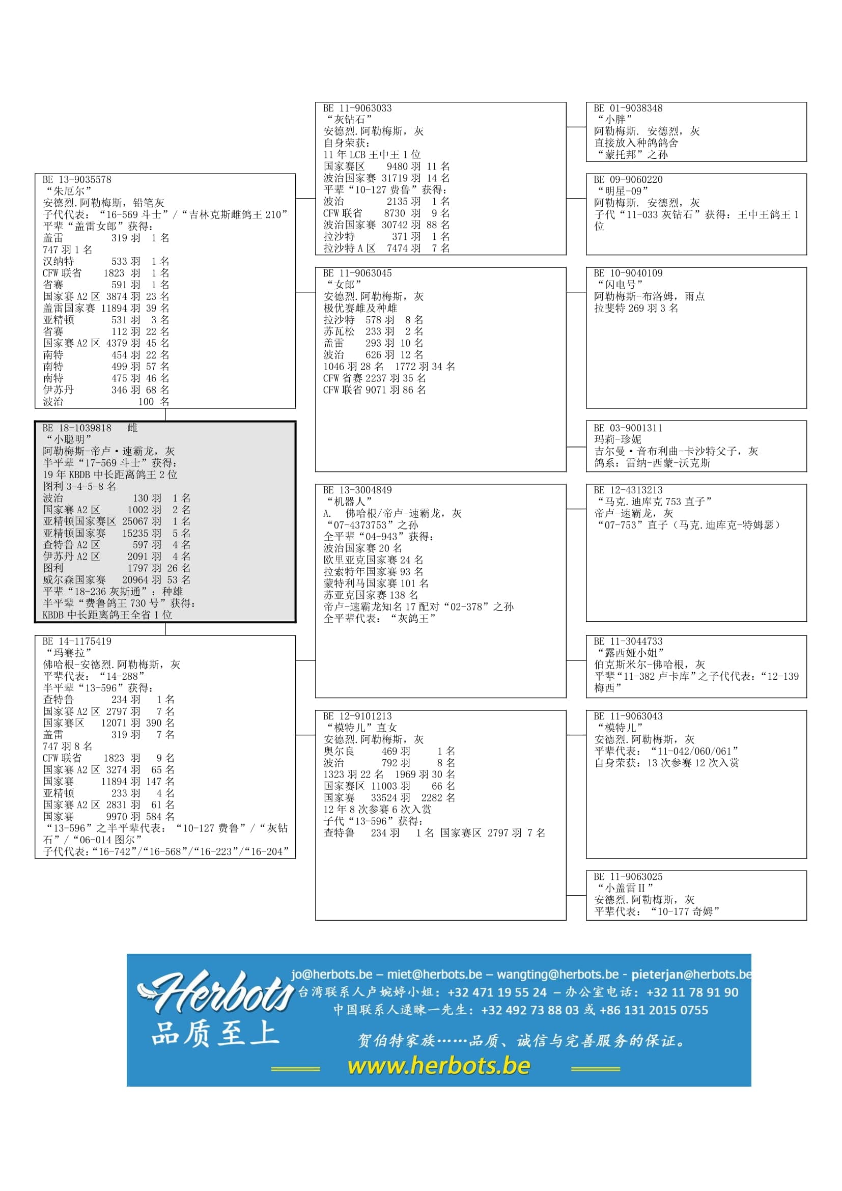 “灰钻石”(波治国家赛31719羽14名)X“女郎”(3次入赏前10名)作育