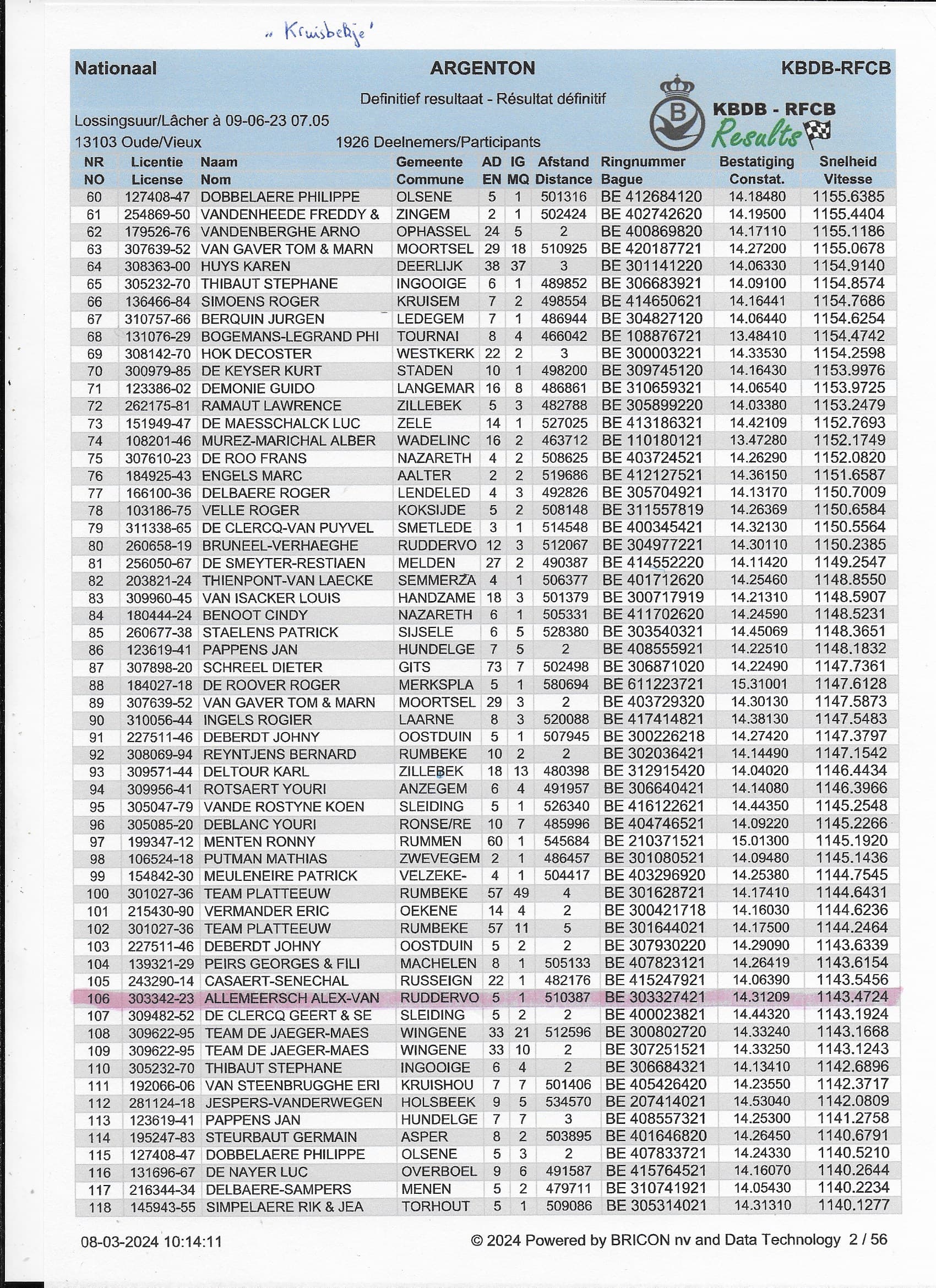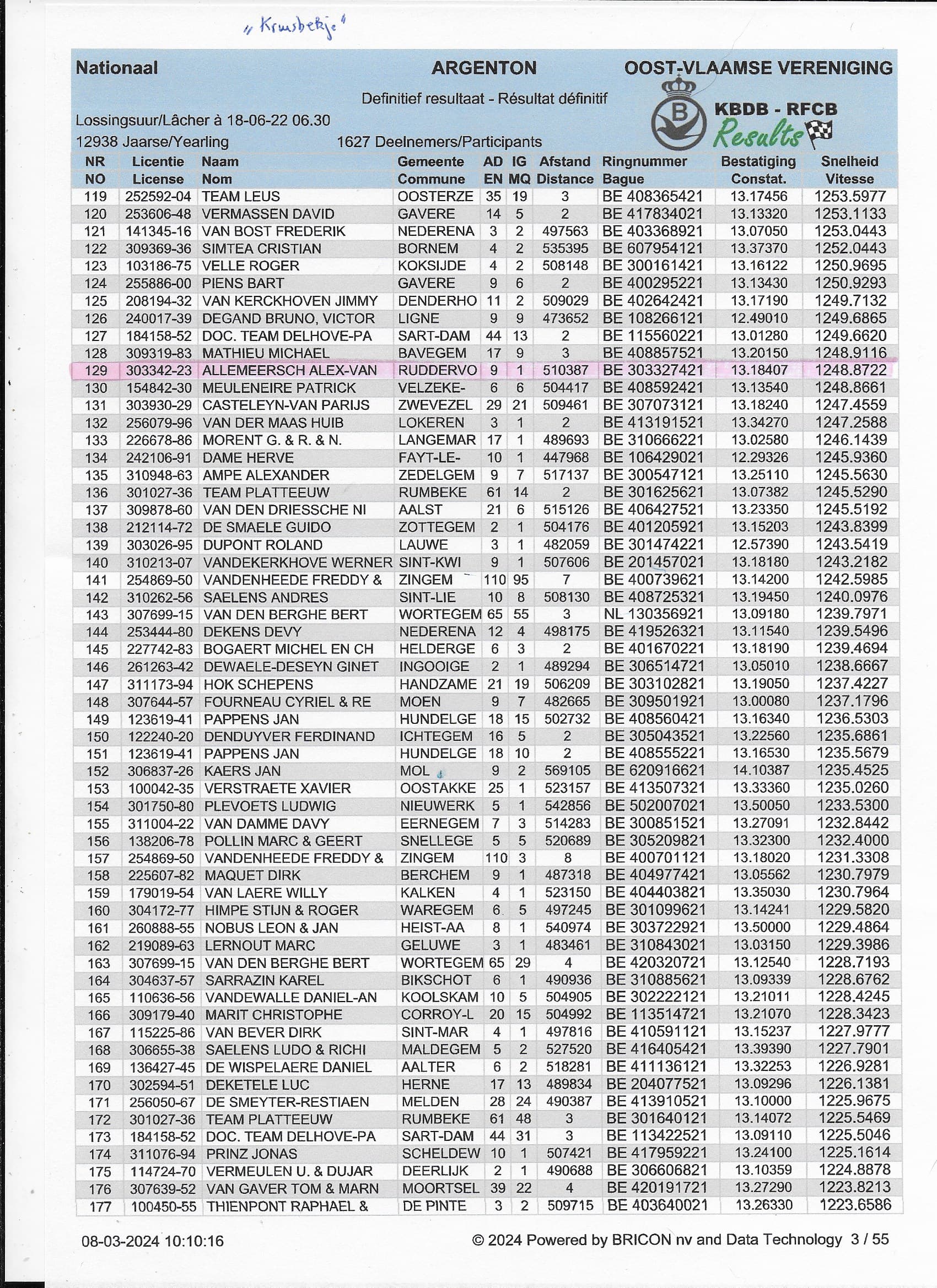 2022年KBDB中距离鸽王省8位