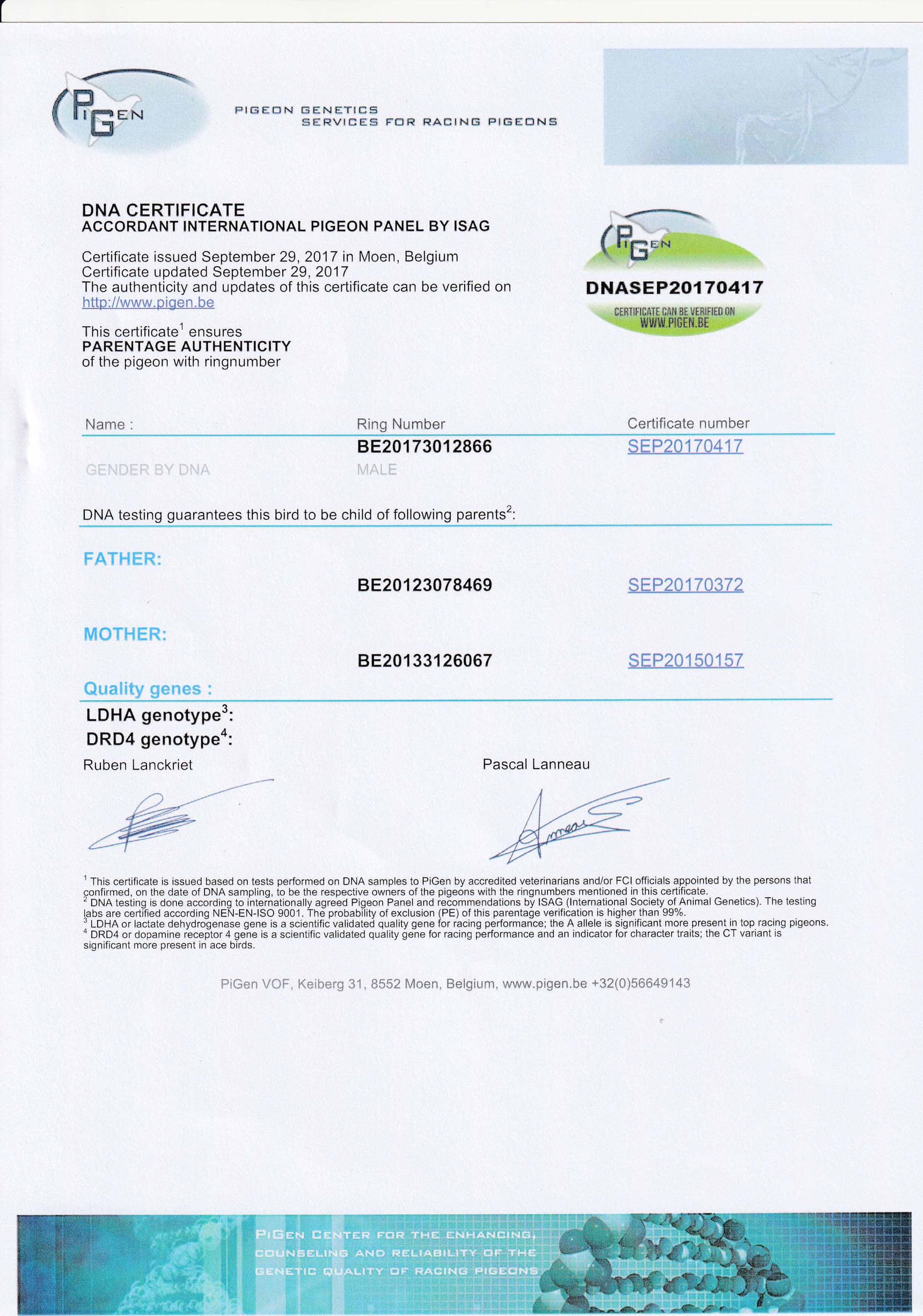 “阳光”之全姐妹. “阳光” 荣获: 拉苏特年国家赛 9,760羽13名, 伊苏丹国家赛 11,984羽24名, 利蒙治国家赛 6,946羽114名, 利蒙治国家赛 9,151羽123名, 查特鲁国家赛 9,540羽152名半平辈荣获: 图尔省赛 6,714羽1名