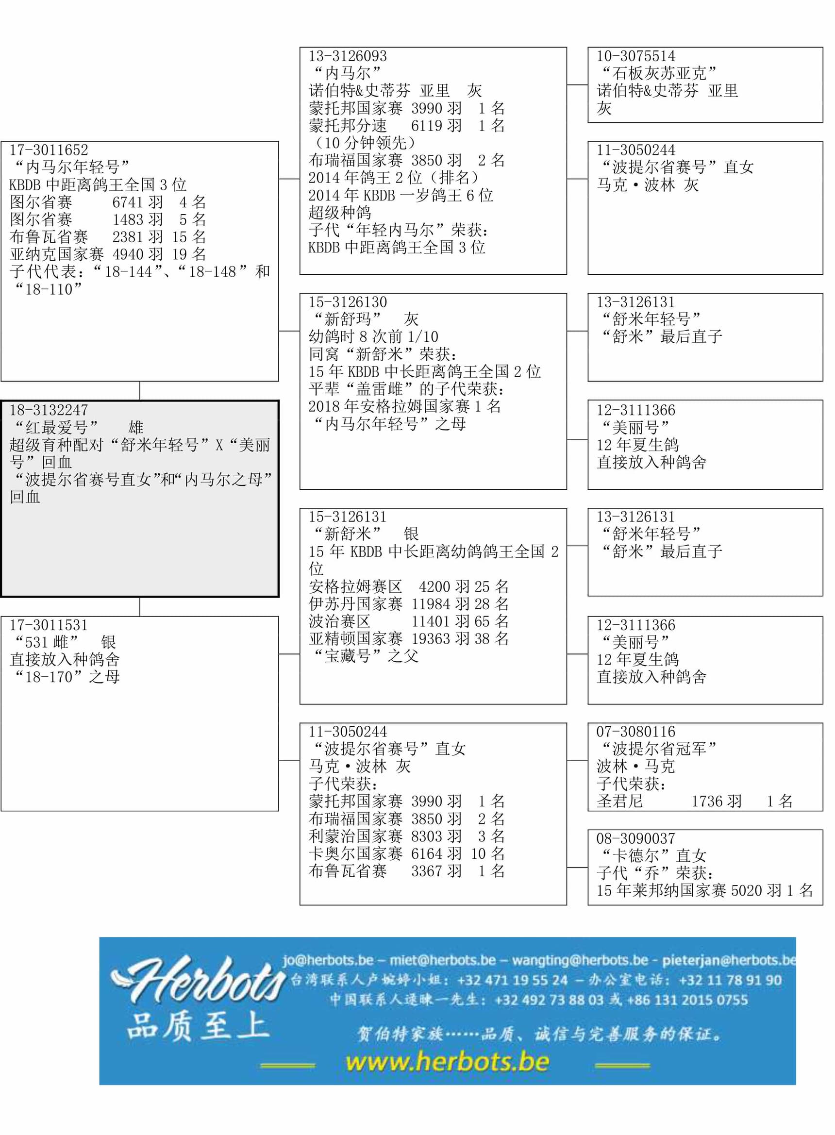 “内马尔年轻号”直子. “内马尔年轻号” 荣获:17年 KBDB中距离幼鸽王全国3位“内马尔”直孙,“内马尔” 荣获: 蒙托邦国家赛 3,990羽1名 – 分速 6,119羽1名 - 布瑞福国家赛 3,850羽2名“新舒米”直孙. “新舒米” 荣获:15年国家赛KBDB幼鸽鸽王全国2位