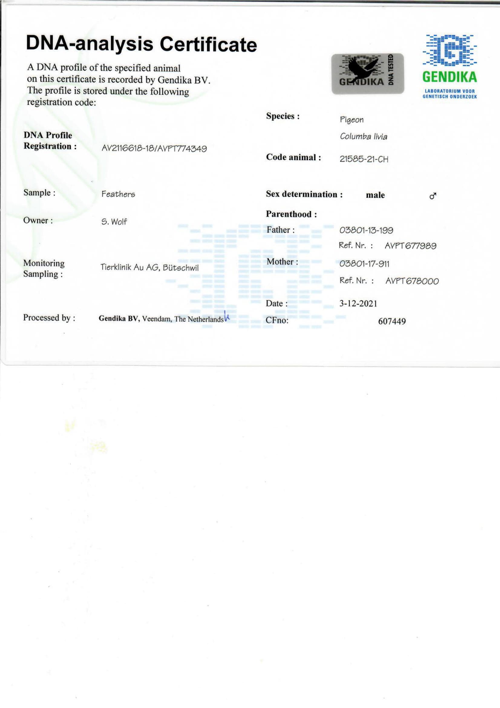 作育者: ALP RACE TEAM/SIMON WOLF 阿尔卑赛鸽队