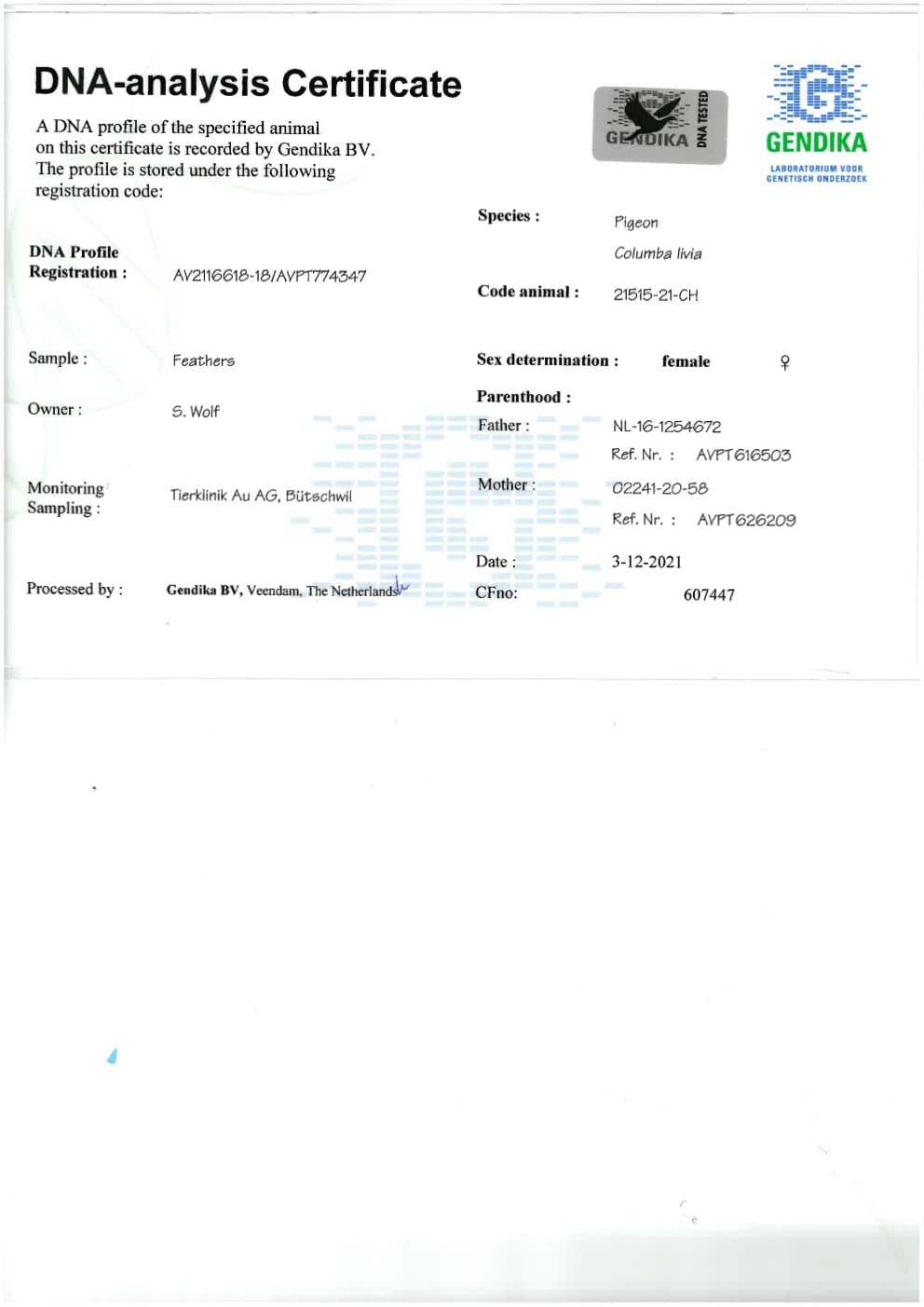 作育者: ALP RACE TEAM/SIMON WOLF 阿尔卑赛鸽队