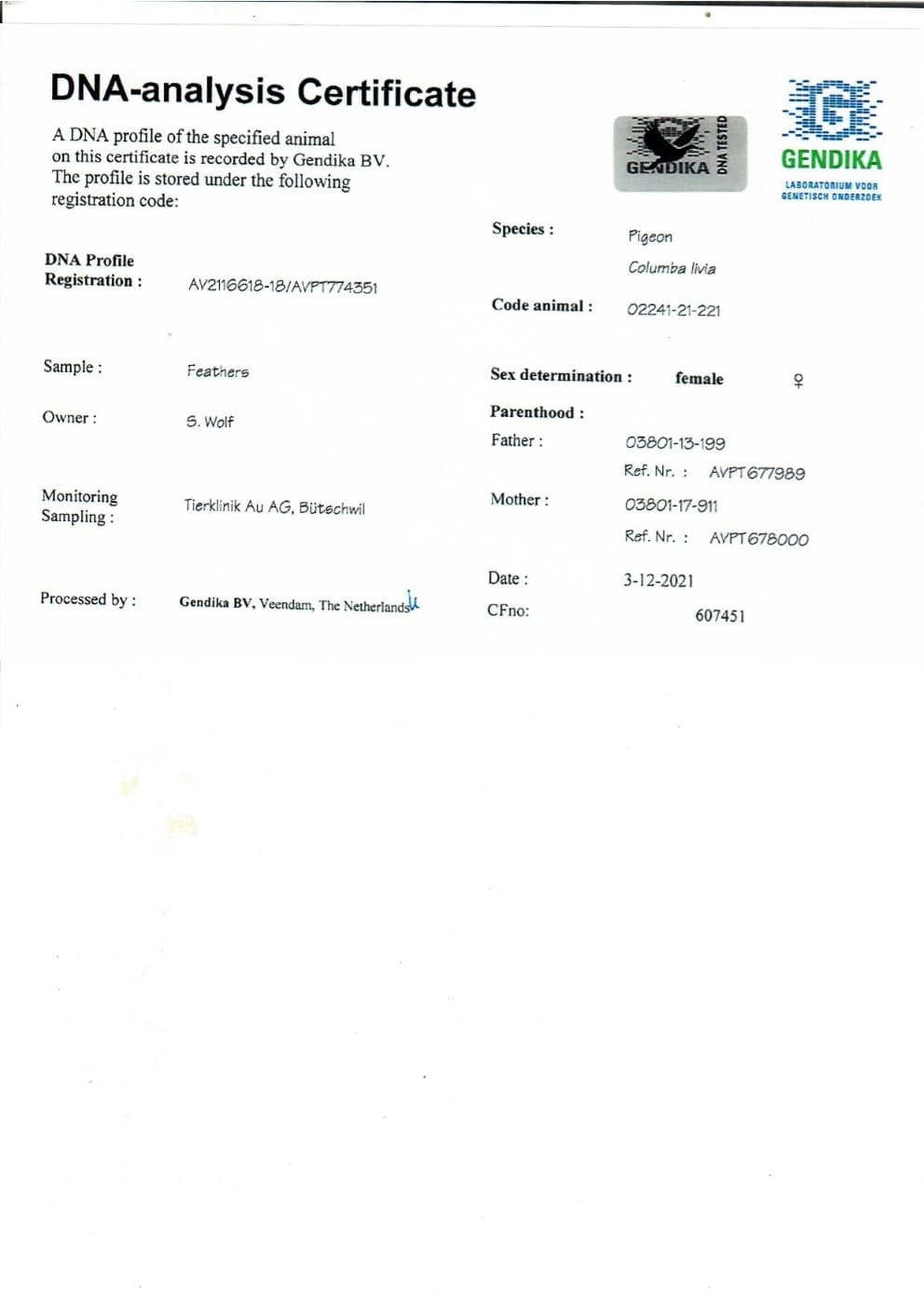 作育者: ALP RACE TEAM/SIMON WOLF 阿尔卑赛鸽队