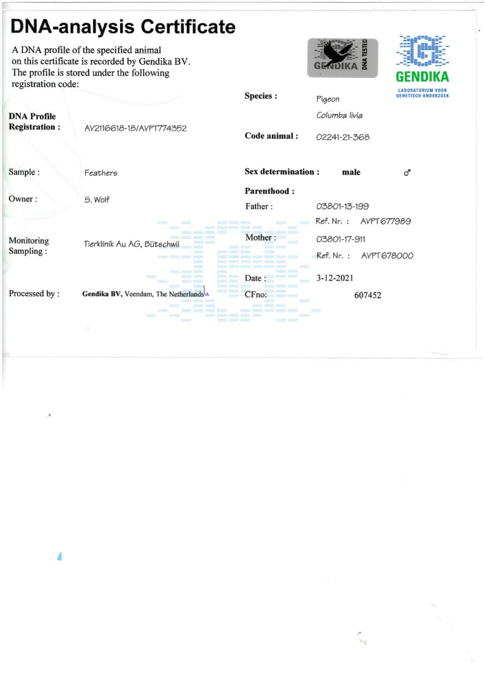 作育者: ALP RACE TEAM/SIMON WOLF 阿尔卑赛鸽队