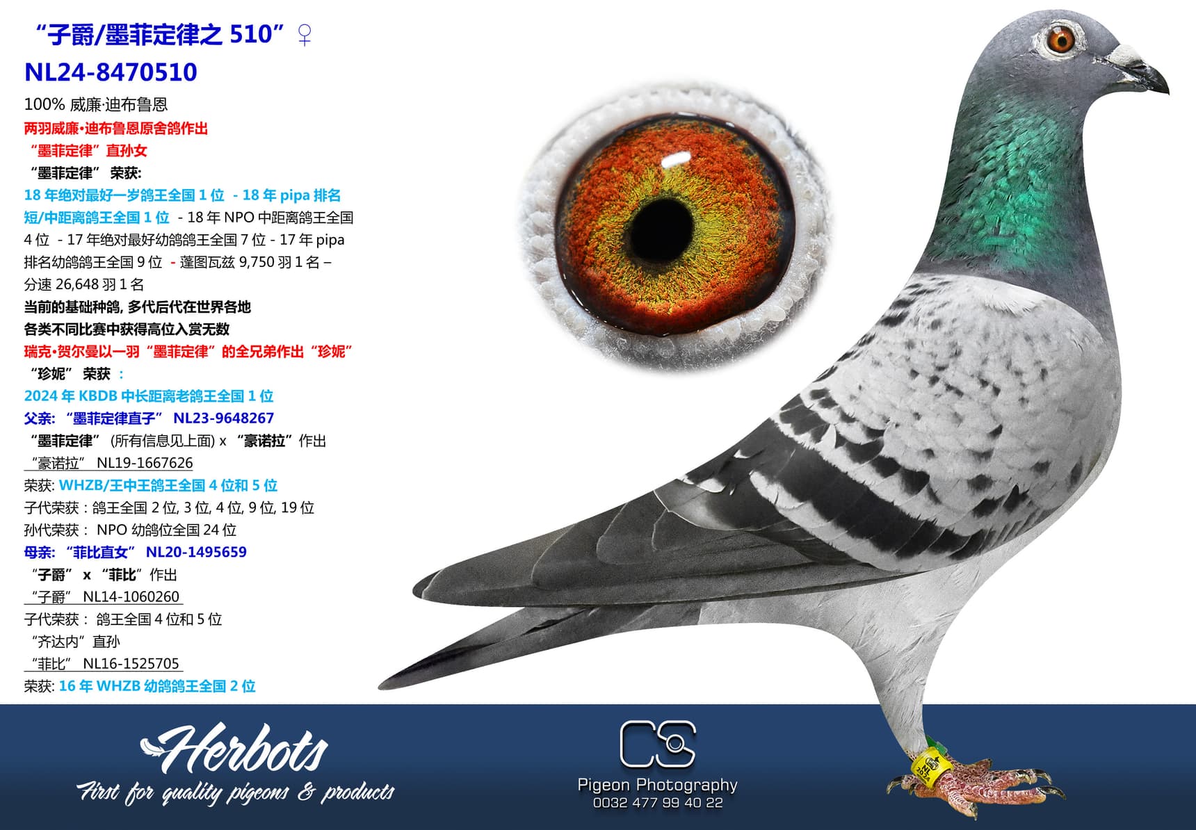 “菲比” (16年WHZB幼鸽鸽王全国2位) 直孙女