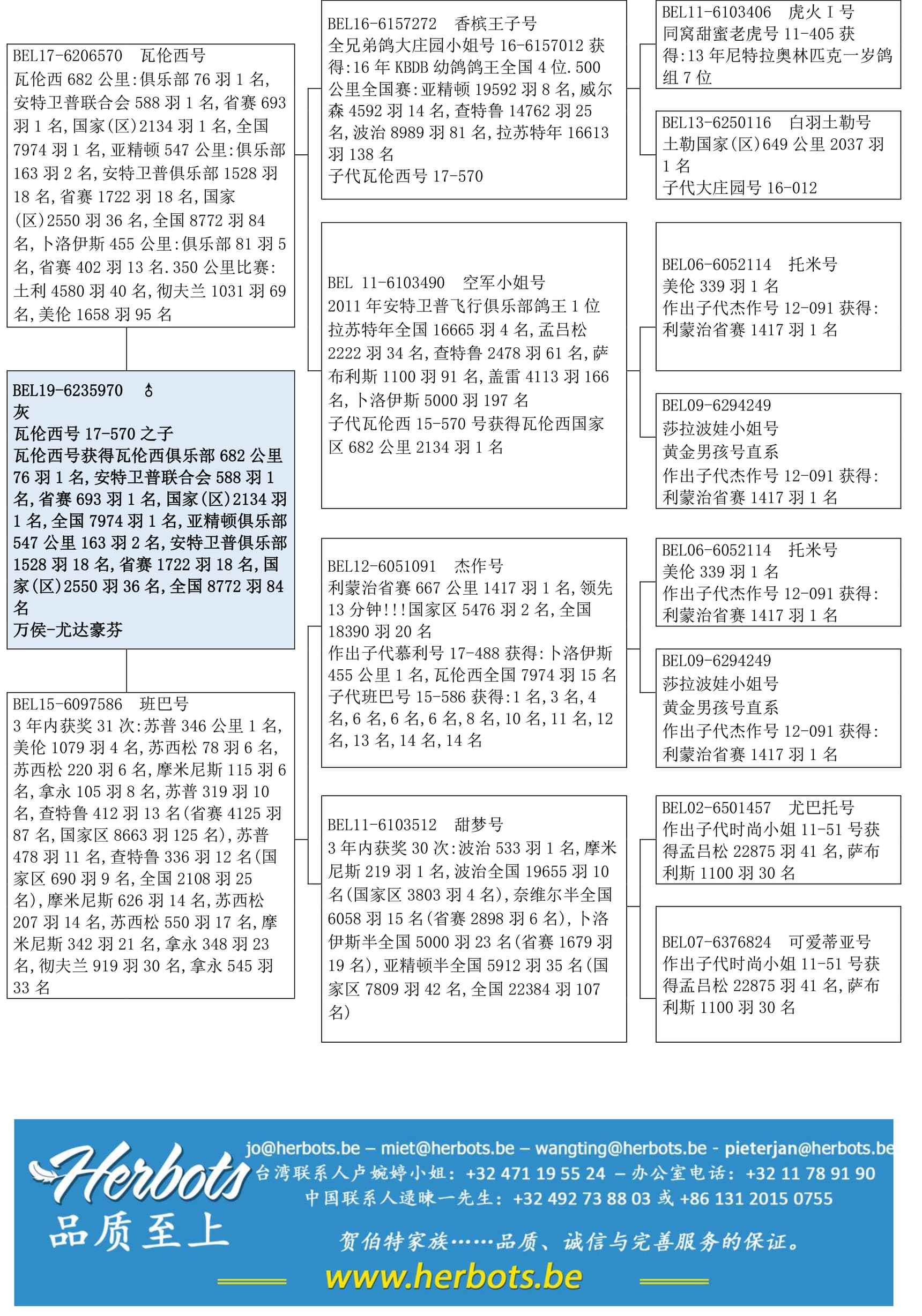同母半平辈 6146619-19 荣获2020年查特鲁国家赛区10995羽1名(16502羽最快速度)