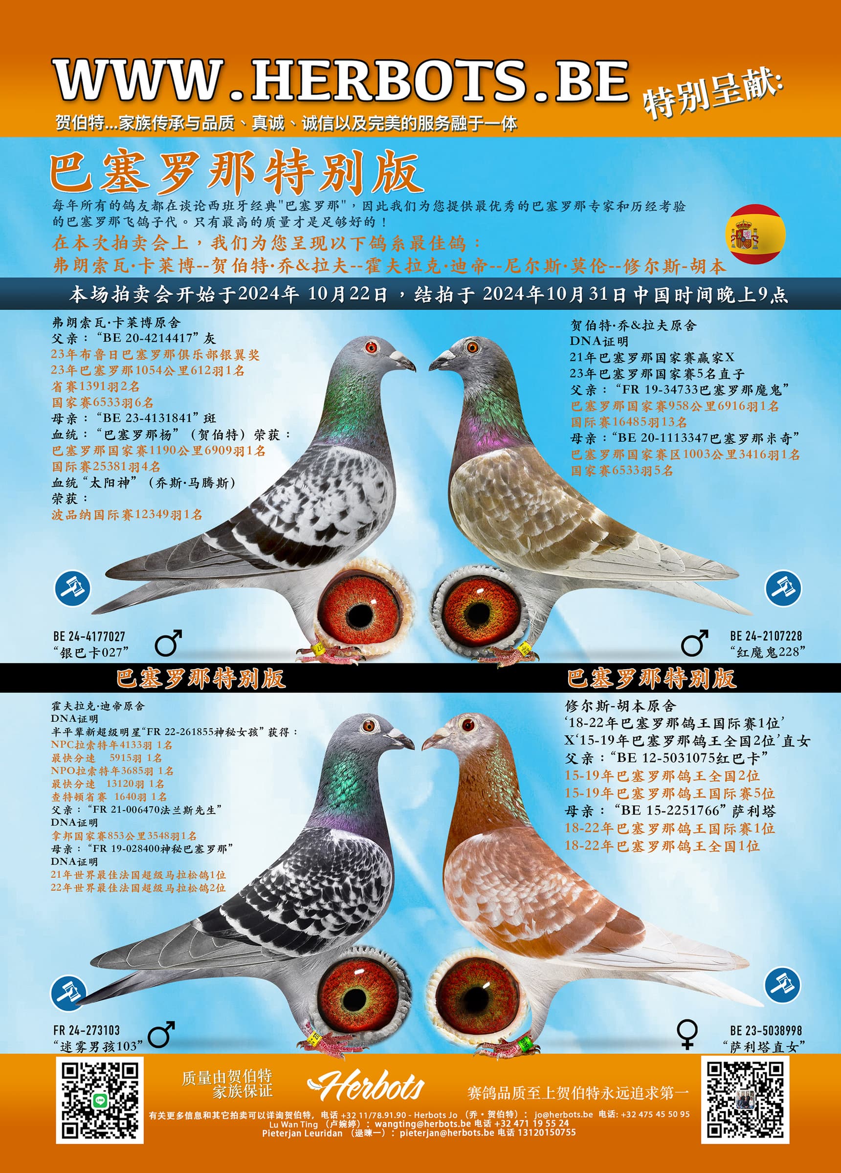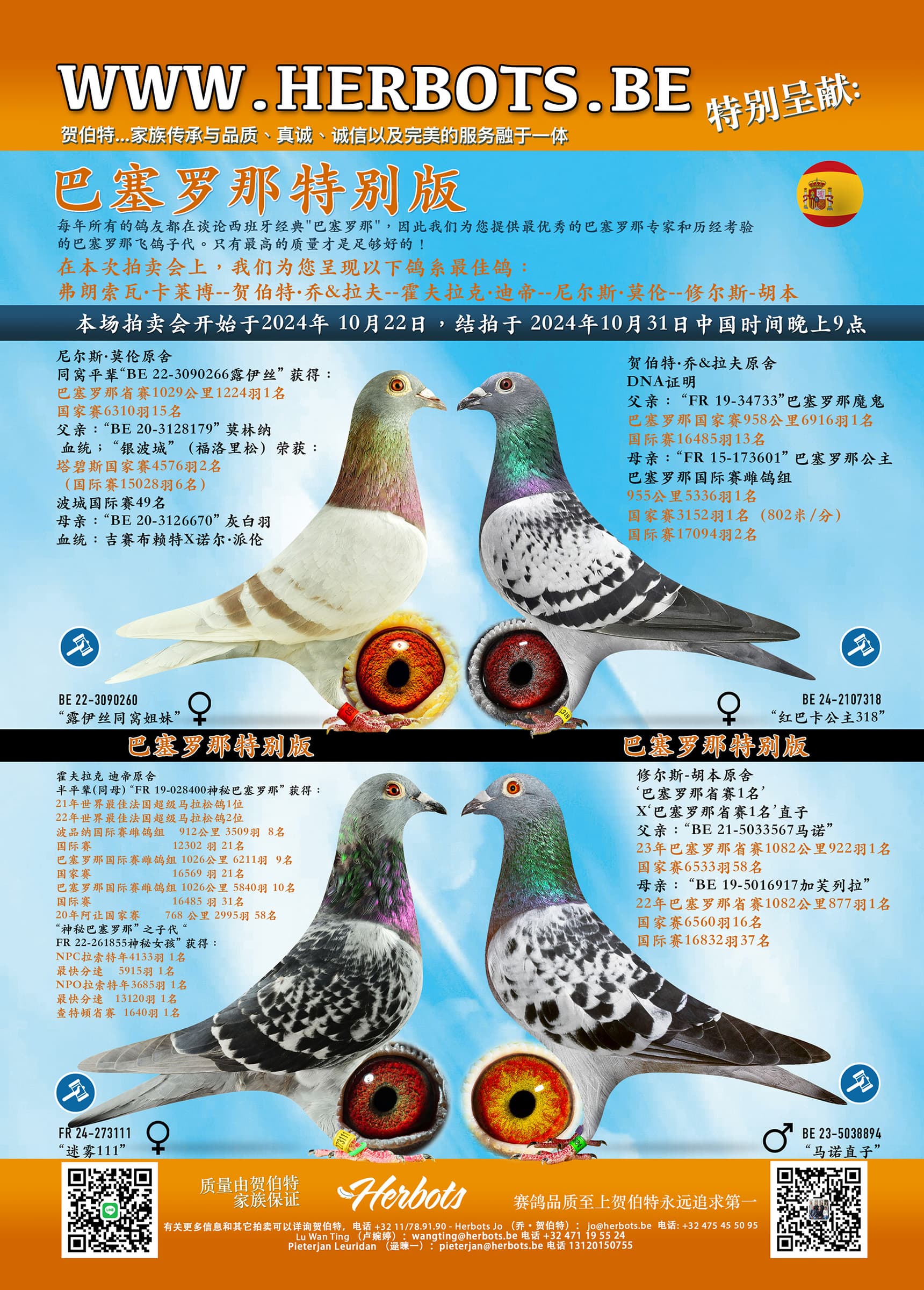 在本次拍卖中,我们为您呈现了以下最佳鸽子: