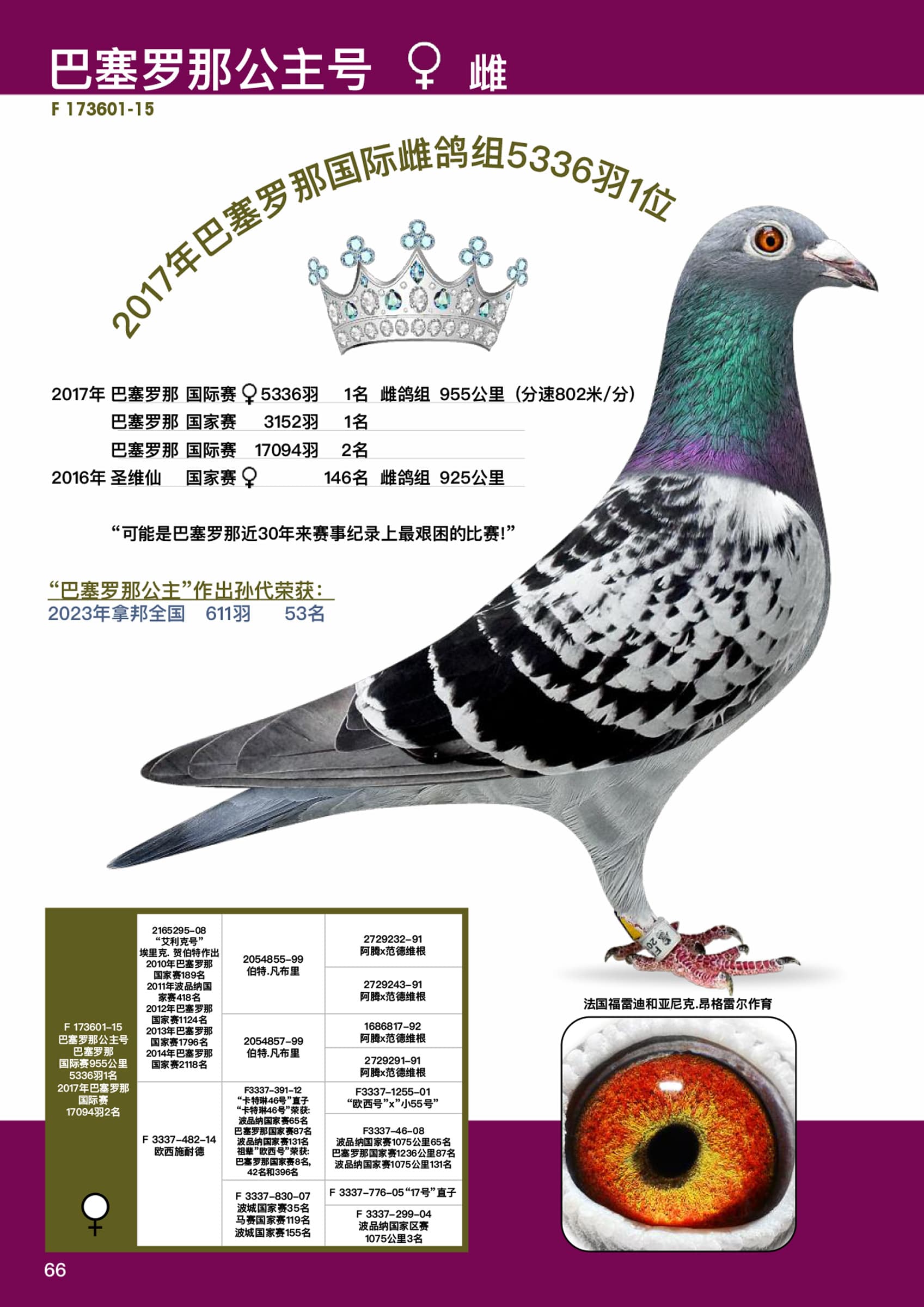 17年巴塞罗那国际赛雌鸽组赢家直女