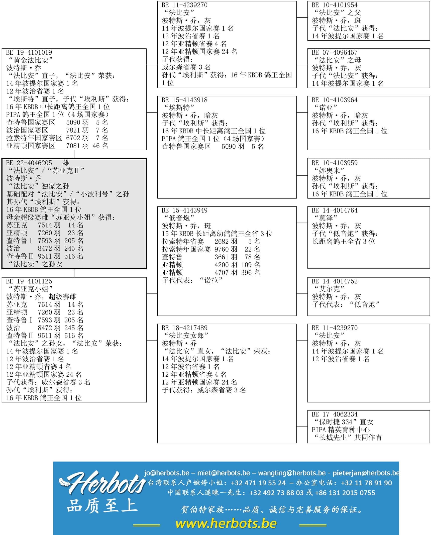 19年比利时最佳一岁鸽(5场长距离国家赛)