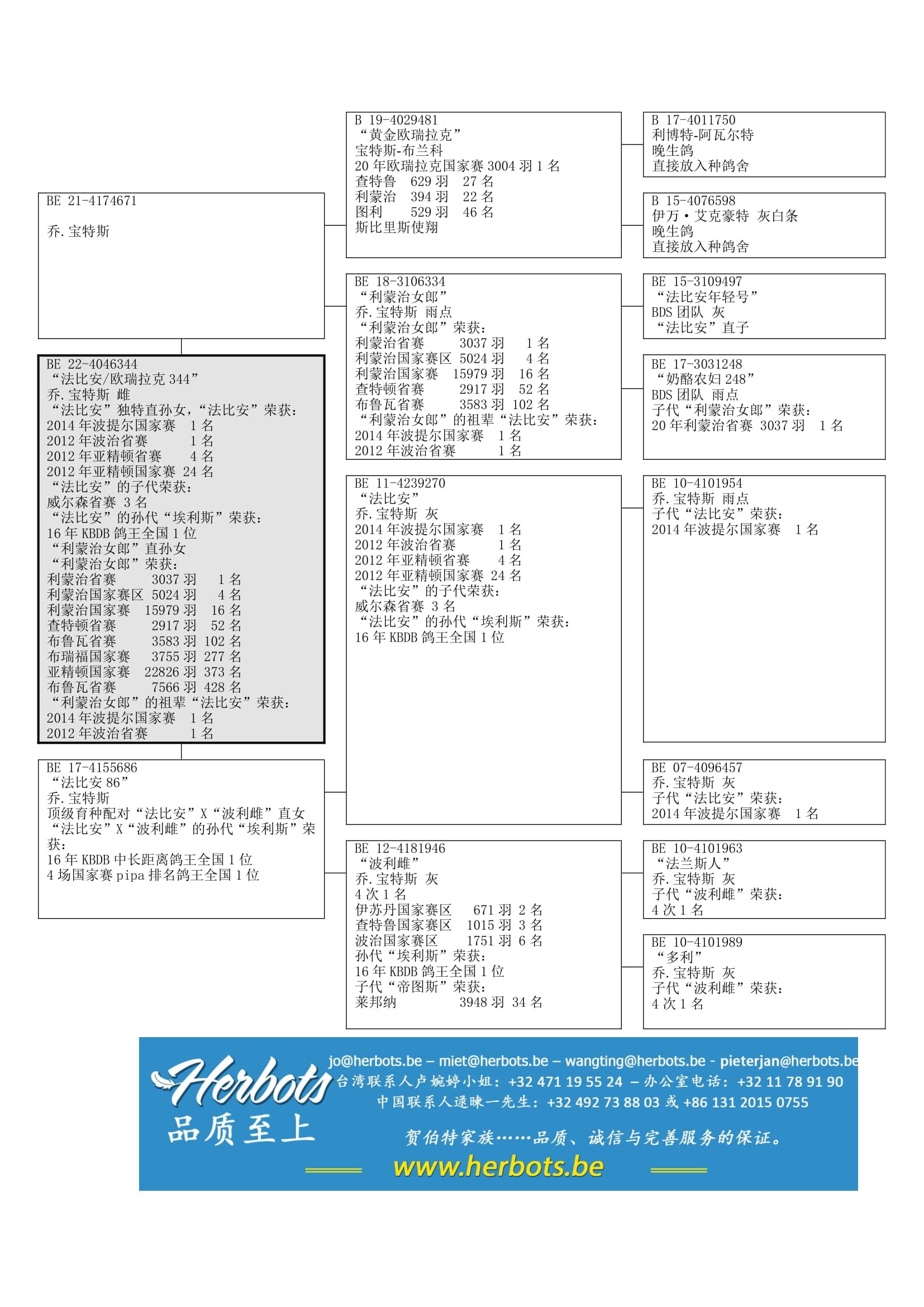 荣获: 波提尔国家赛 12,379羽1名 – 波治省赛 2,473羽1名