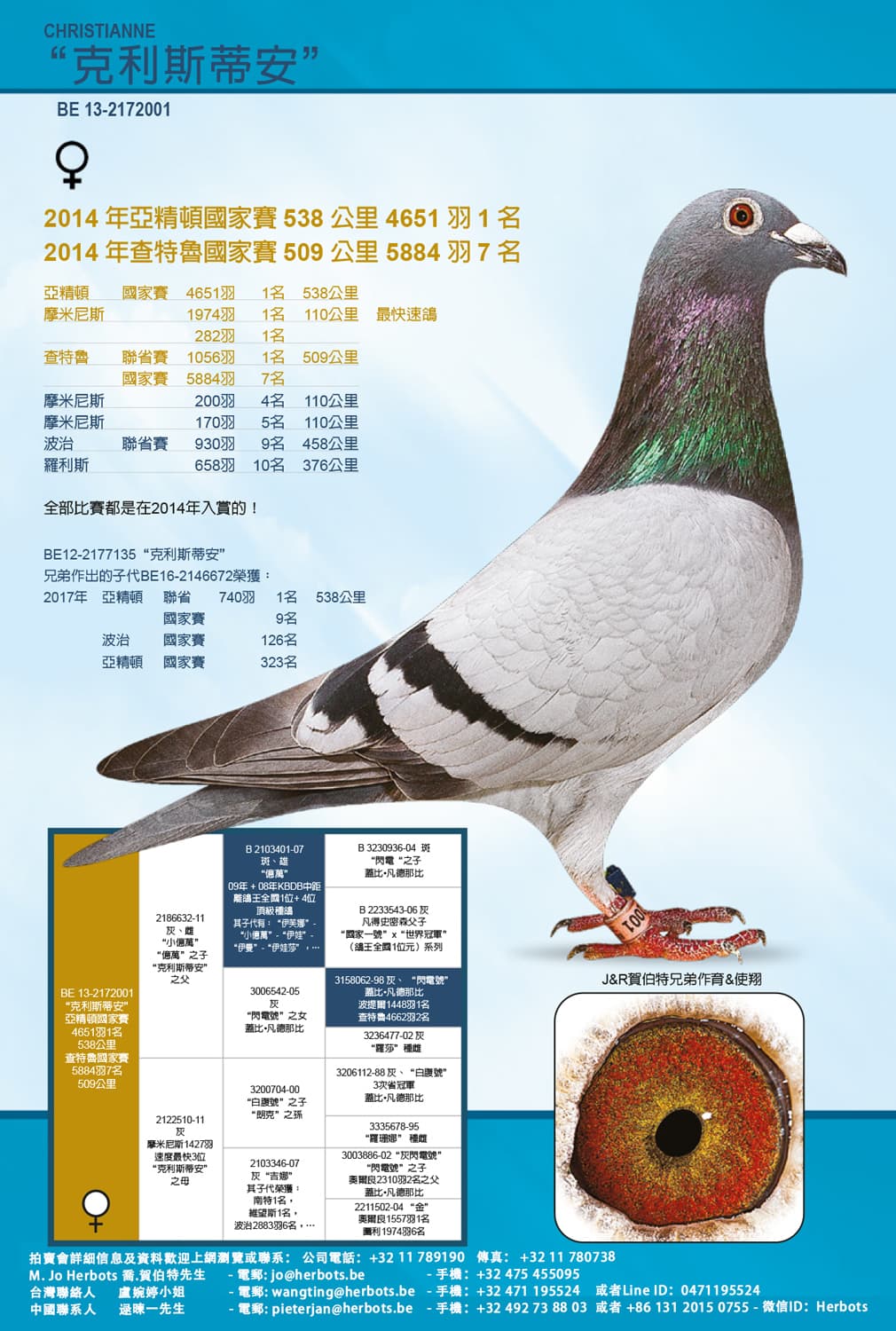 冠军雌鸽“克里斯蒂安”之全兄弟.