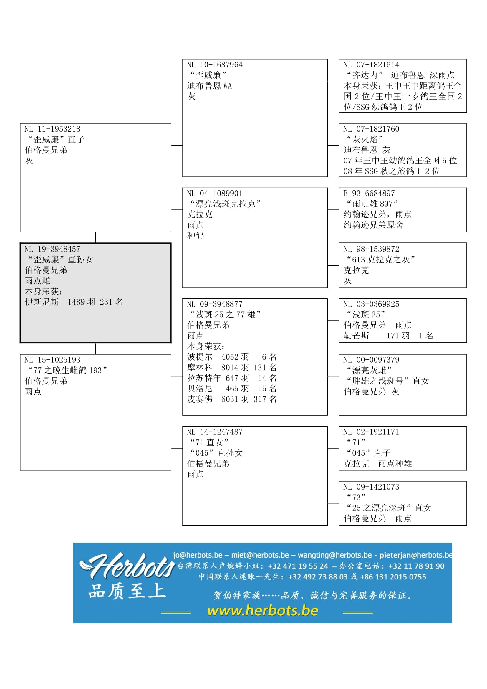 其祖辈“灰火焰”荣获:王中王幼鸽鸽王全国5位