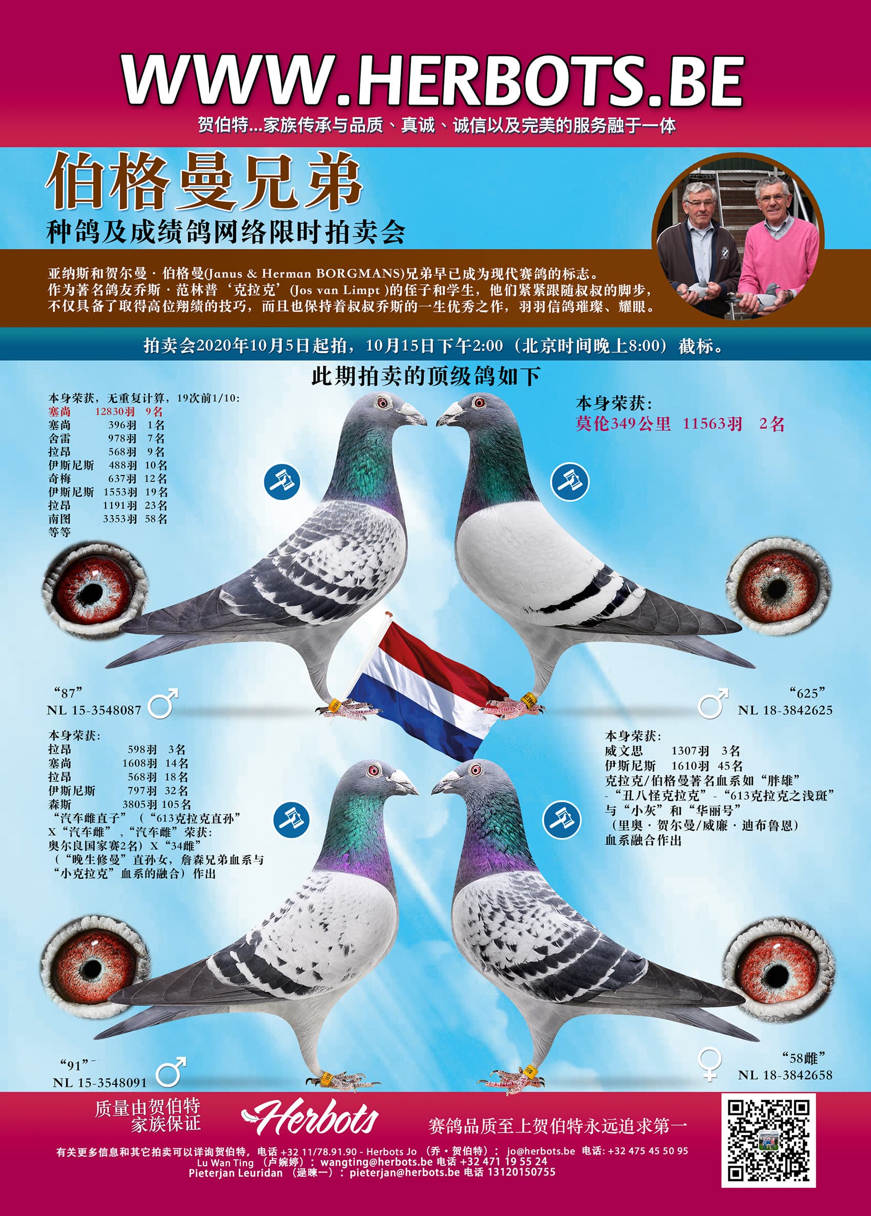 其祖辈代表:“齐达内” (鸽王全国2位) x “灰火焰” (鸽王全国5位),威廉·迪布鲁恩原舍