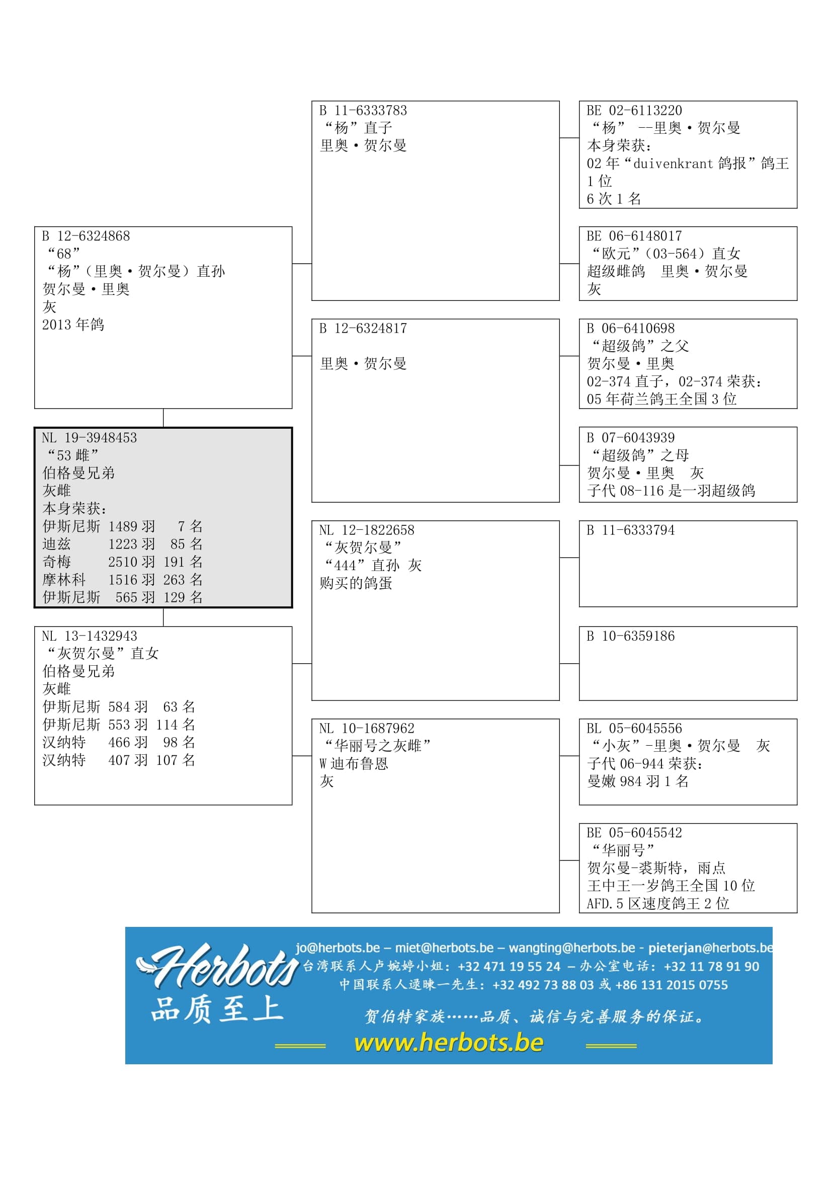 “灰贺尔曼” (“444”直孙) x “华丽号之灰雌” (威廉·迪布鲁恩原舍– “小灰” x “华丽号”直女) 直女