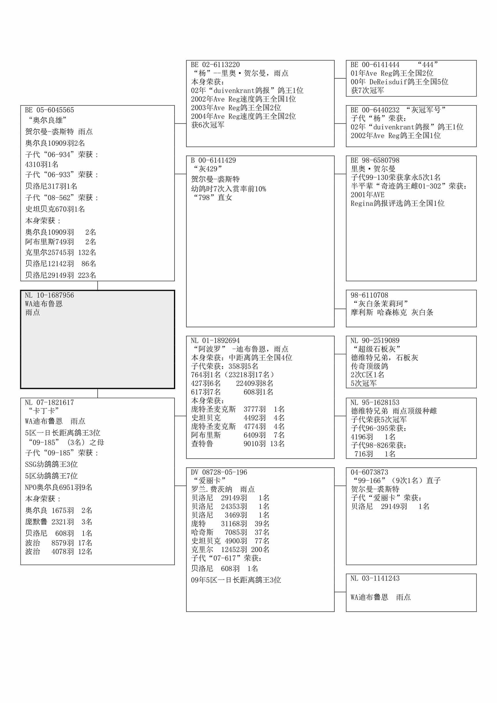 其父“奥尔良雄”荣获:NPO 奥尔良 10,909羽2名其母“卡丁卡”荣获:Afd 5一日长距离鸽王3位