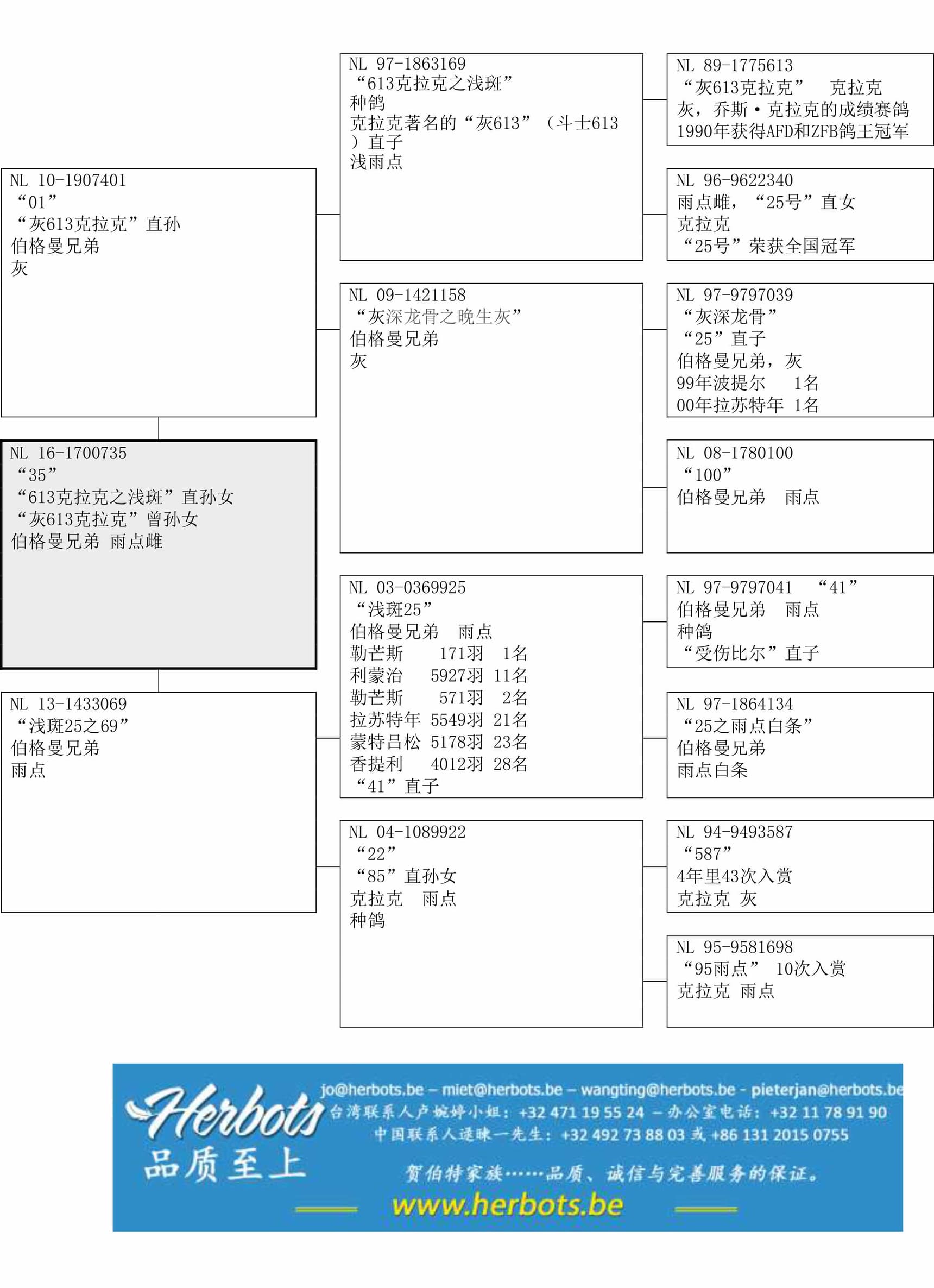 其祖辈“浅斑25”荣获:勒芒斯571羽2名 – 利蒙治 5,927羽11名 – 拉苏特年 5,549羽21名 - 蒙特吕松 5,178羽23名 – 香提利 4,012羽28名