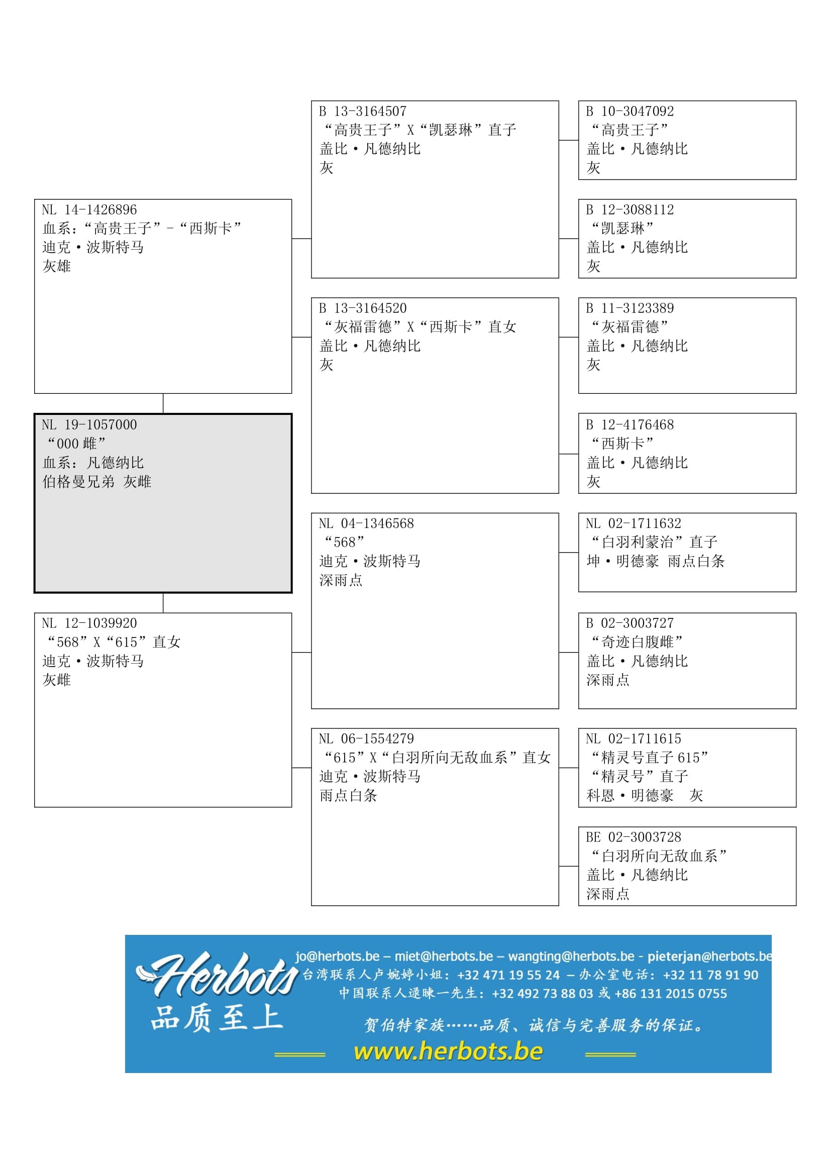 血系: “高贵灰”x “蒙娜”以及“福雷德” x “玛丽雌”