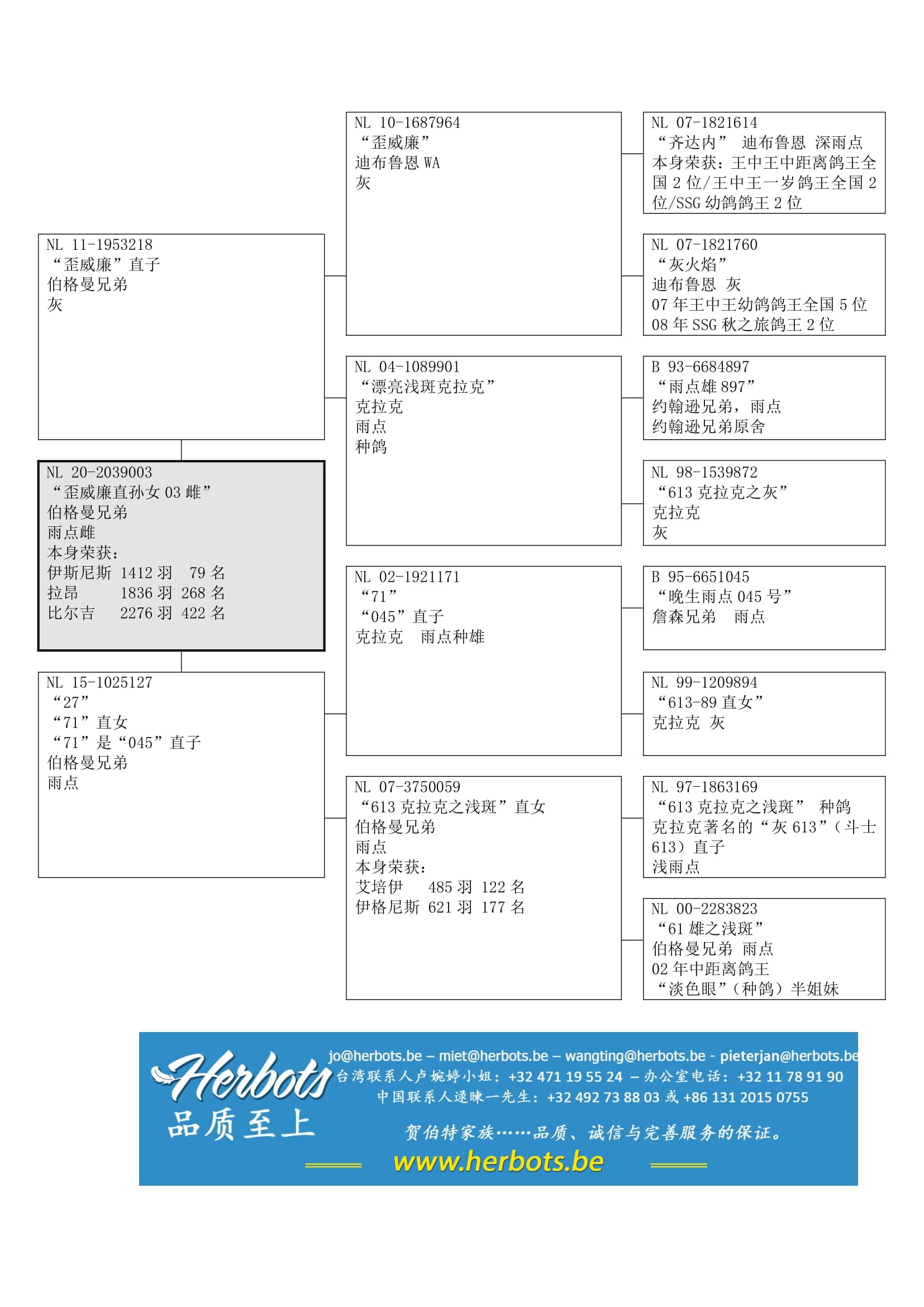 其祖辈“灰火焰”荣获:王中王幼鸽鸽王全国5位