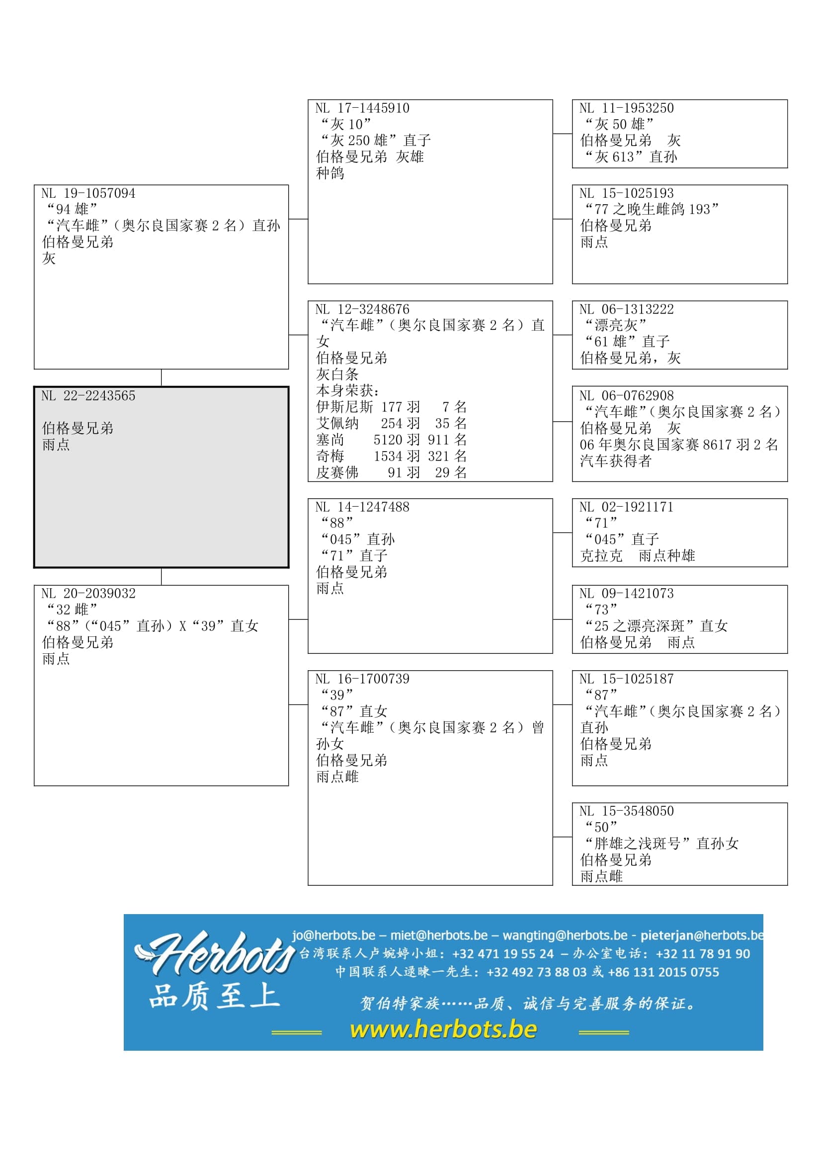 其祖辈“25之漂亮深斑”荣获:威文思 762羽1名 – 圣吉斯兰 172羽2名 - 拉昂 739羽4名