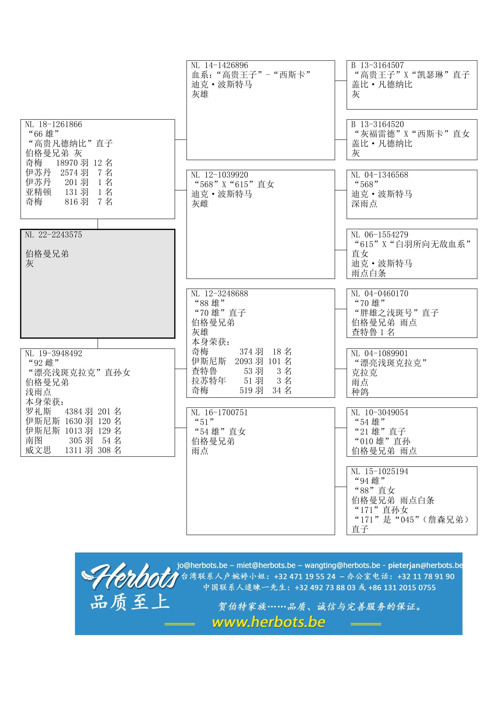 血系: “高贵灰”x “蒙娜”和“福雷德”x “玛丽雌”