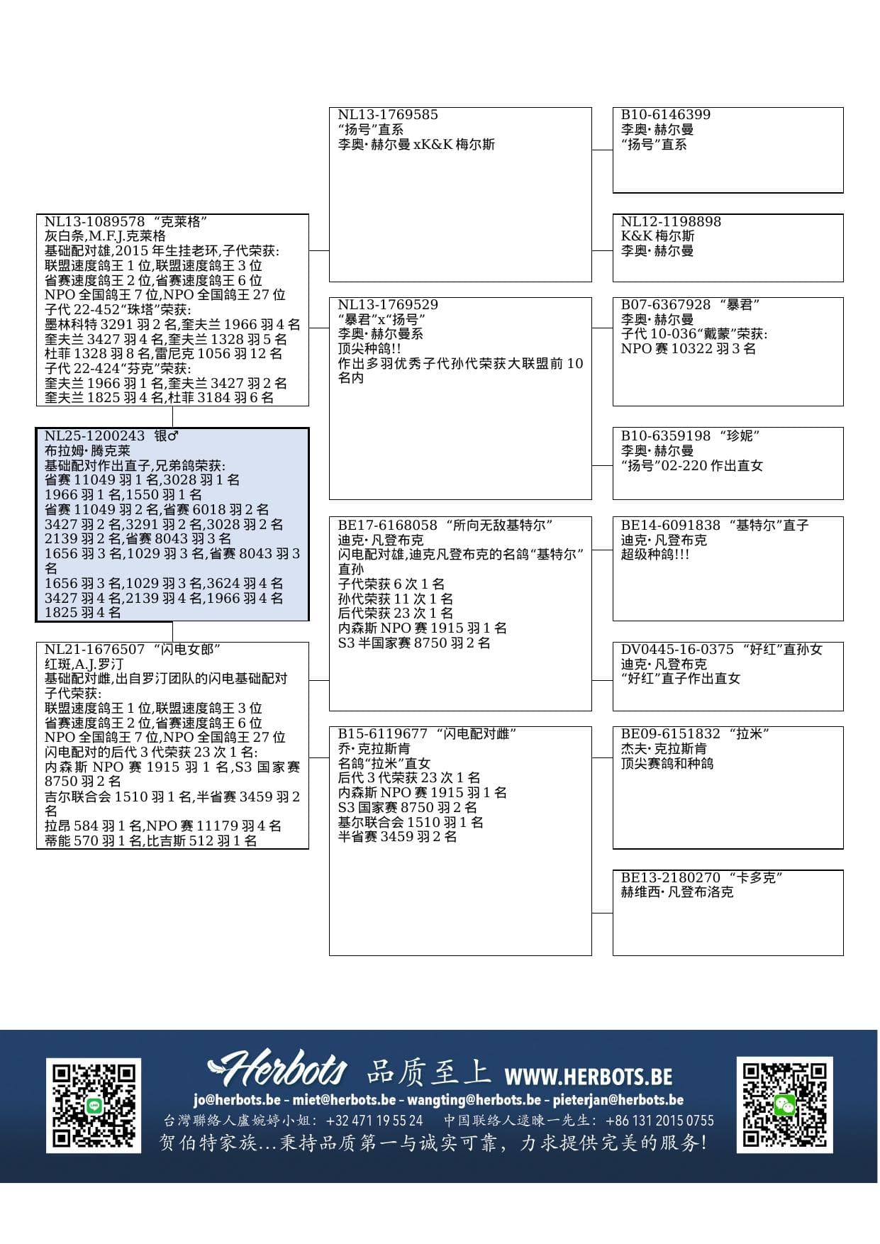 “暴君” (BE01-6455003 “奥林匹克”直孙),作出子代“戴蒙”荣获: - 2013年WHZB全国Natoer鸽王7位.“戴蒙”获得:NPO赛10,322羽3名-12,179羽2名–3,064羽1名–1,568羽1名–1,103羽1名–144羽1名–13,553羽2名–626羽2名–15,762羽24名–809羽2名–1,473羽3名–1,281羽4名