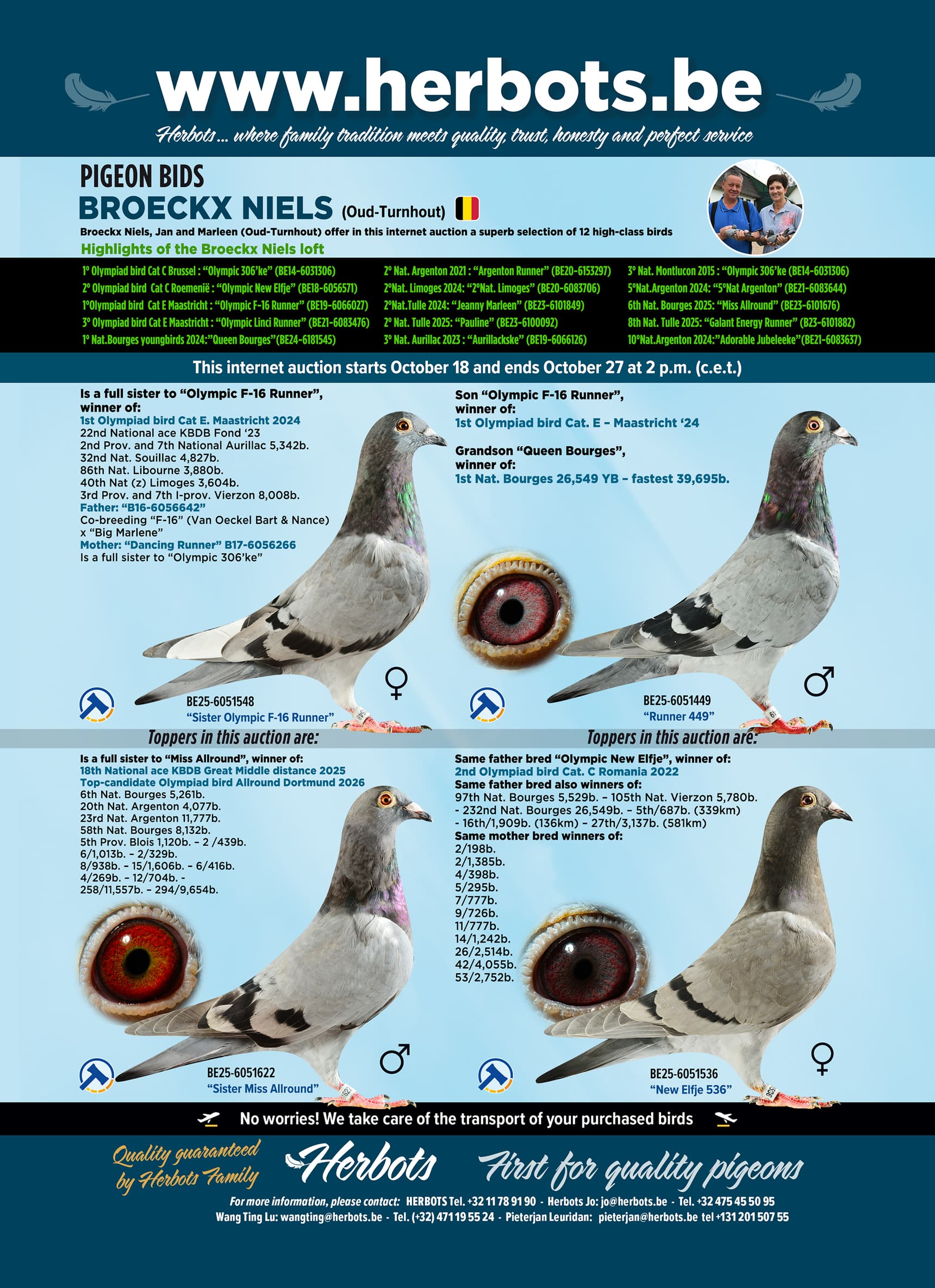 Marleen, Niels and Jan will therefore be offering only the very best of their colony for sale, especially for Pigeon Bids.