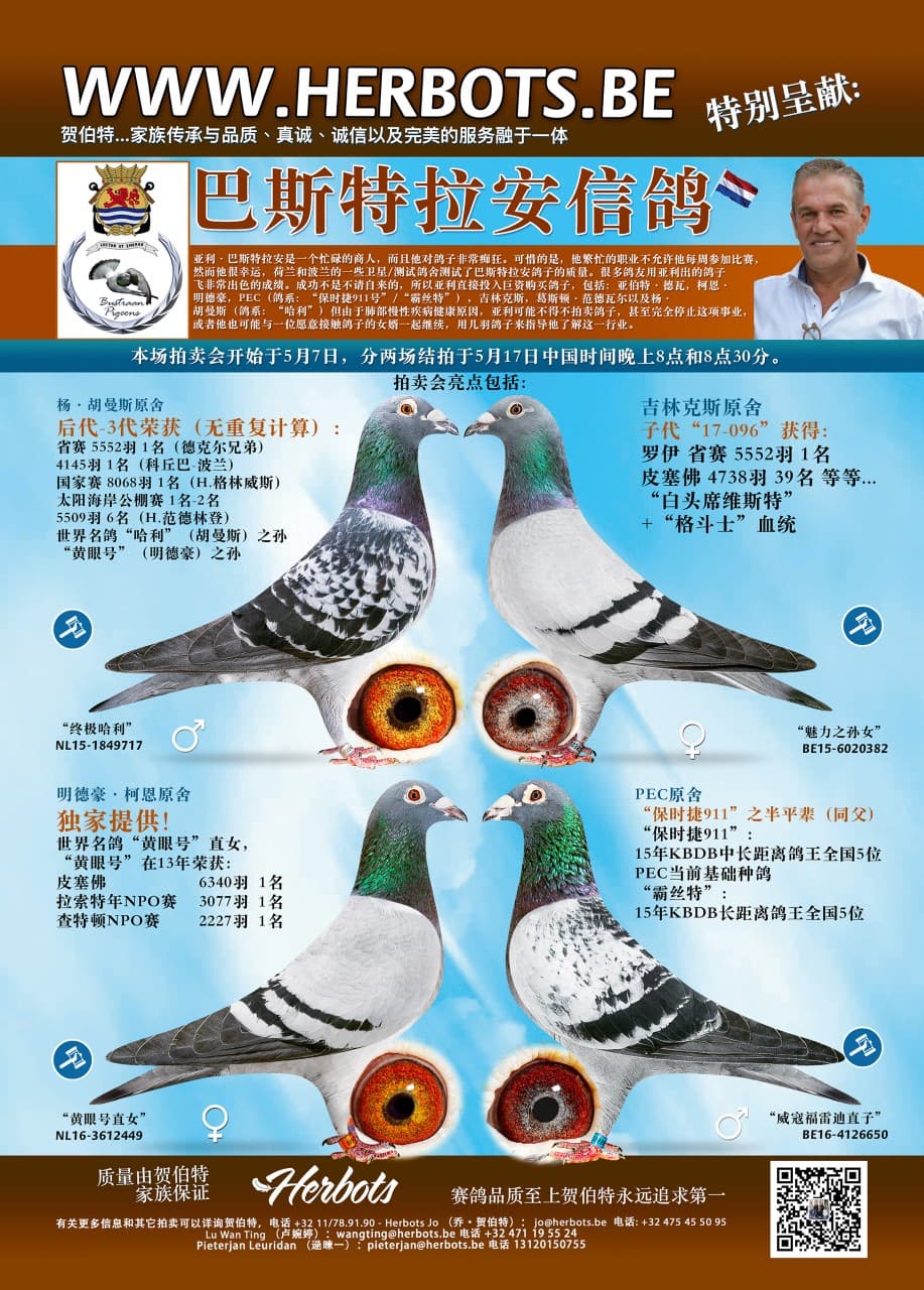 亚里·布斯特拉安(Arie Bustraan)和贺伯特团队都坚定地认为此期拍卖鸽:独特奉献,至高品质!天赋卓绝,超然出众!