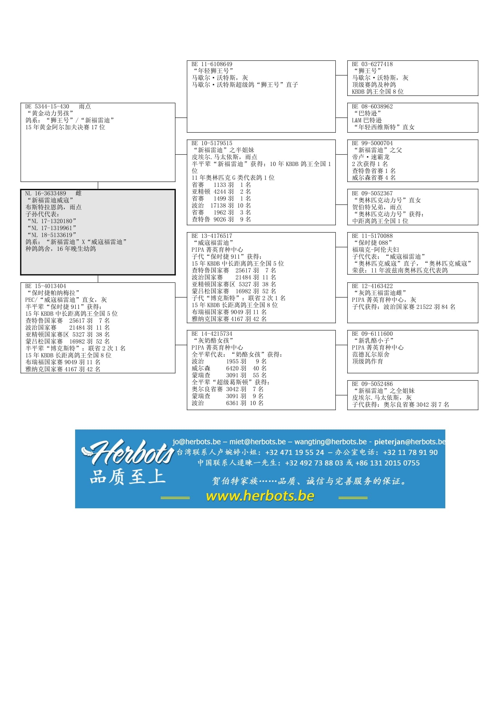 “新福雷迪半姐妹”之半平辈“新福雷迪”获得:KBDB鸽王全国1位(皮埃尔-马提斯)