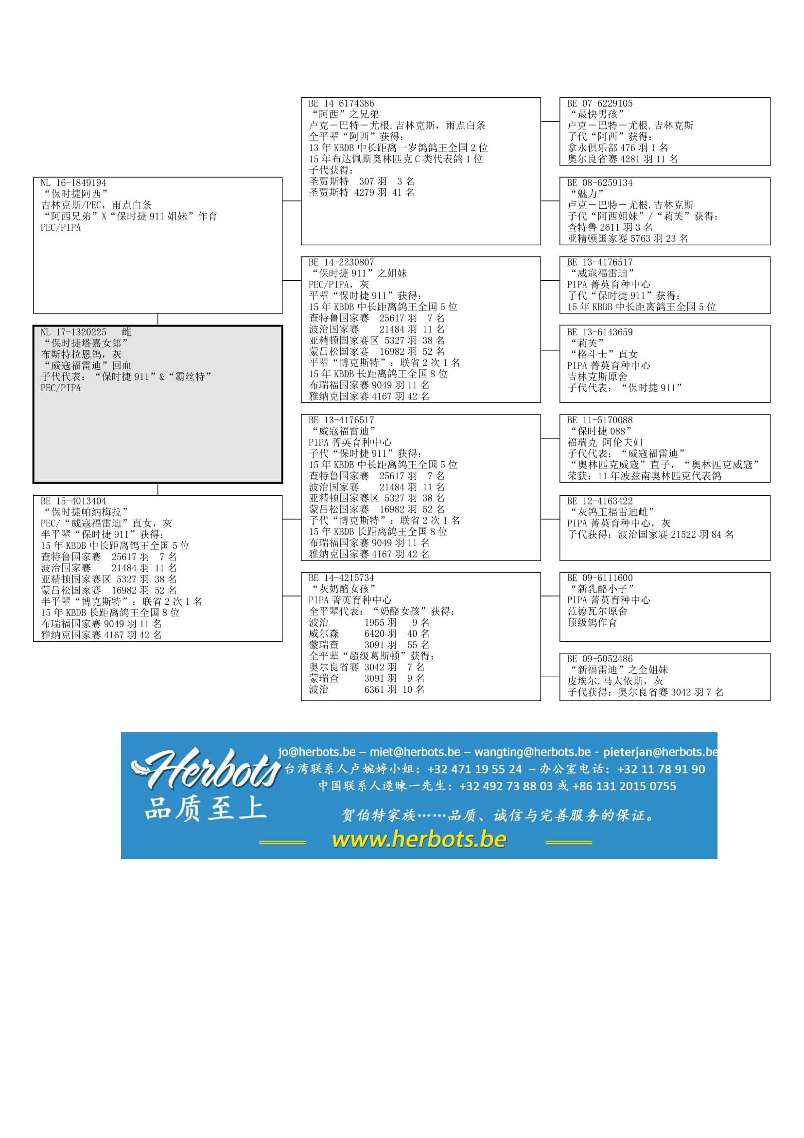 全平辈代表:著名种鸽 “保时捷911号”/ “霸丝特” (所有信息如上).