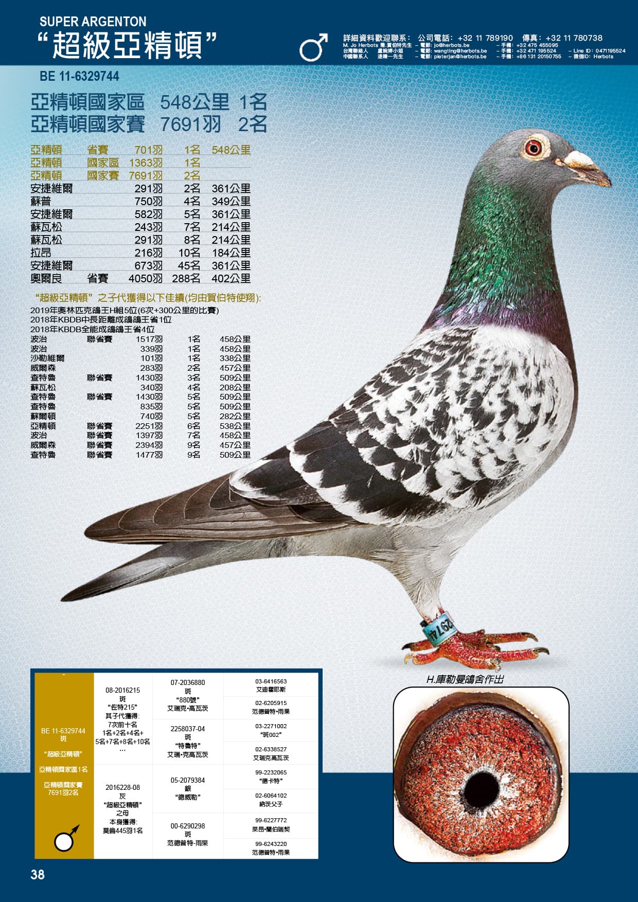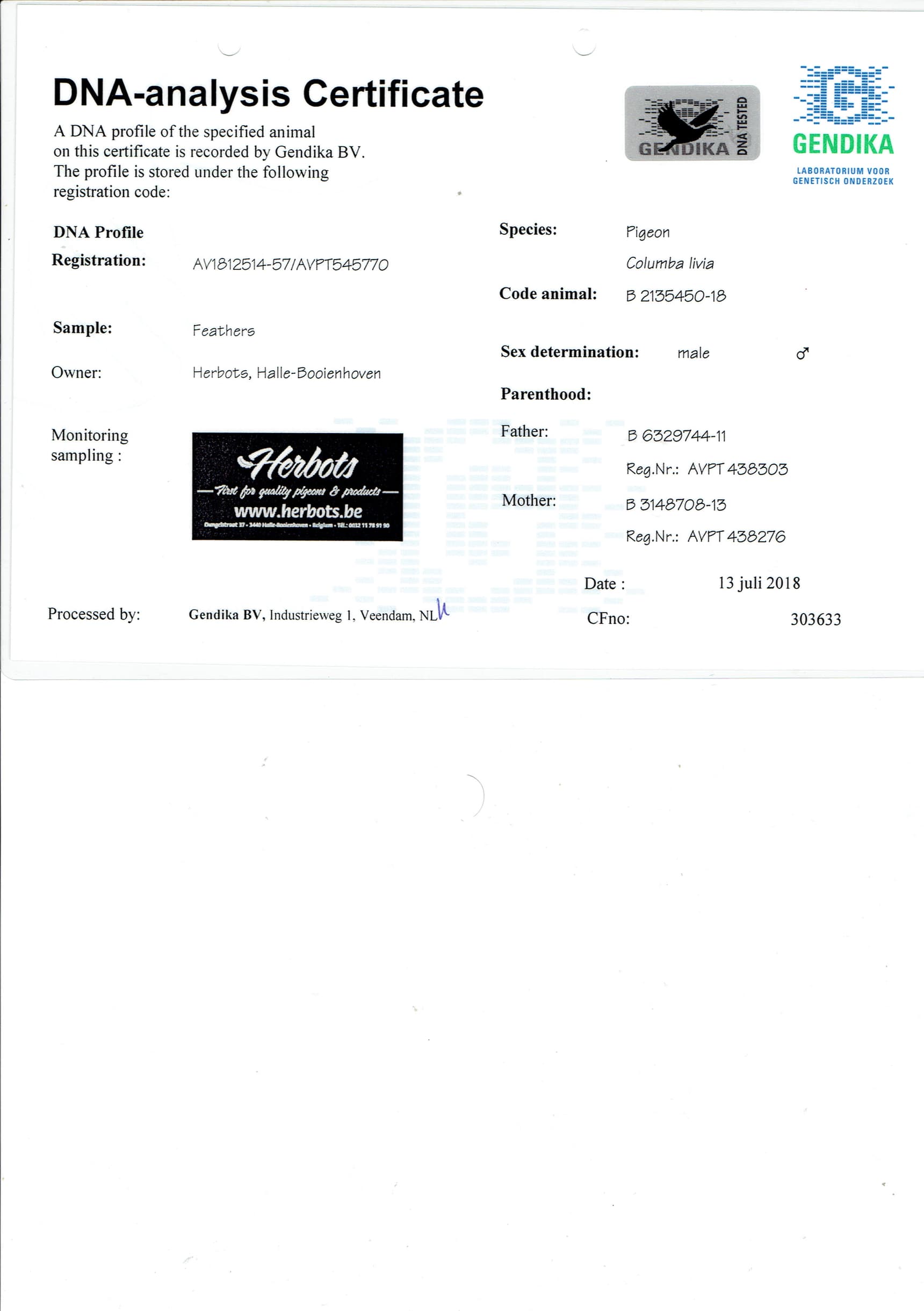父亲:BE11-6329744 “超级亚精顿”亚精顿省赛 701羽1名548公里 - 亚精顿国家赛区 1363羽1名 - 亚精顿国家赛 7691羽2名 母亲:BE13-3148708 波尔多国家赛1名之半姐妹 - 盖比·凡德纳比